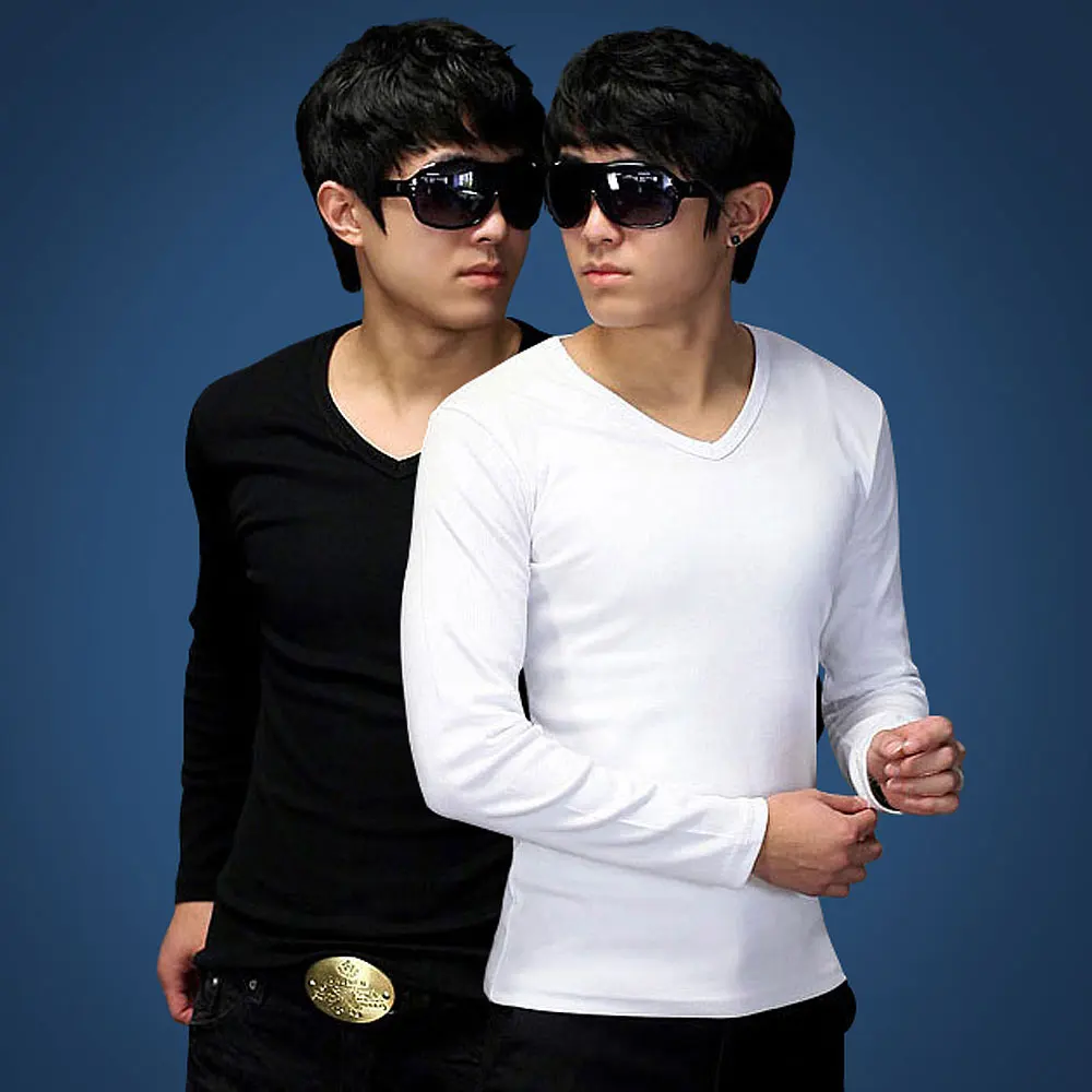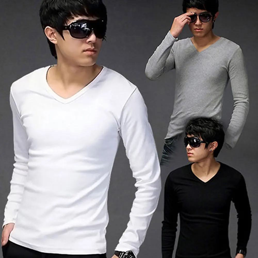2022 весенне-осенние мужские топы с v-образным вырезом, футболки, мужские футболки с длинным рукавом, облегающие Стрейчевые мужские рубашки, повседневные хлопковые футболки