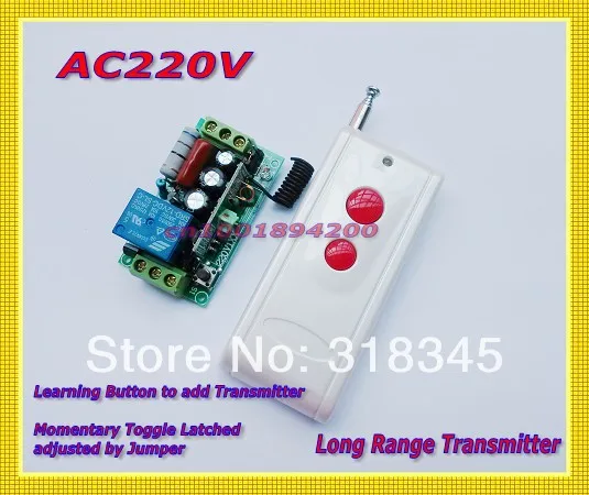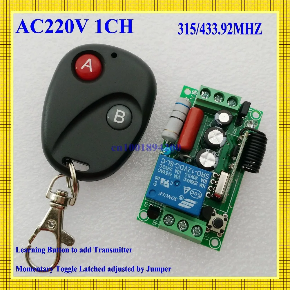 2. Максимальный ток: 10А (лучше ниже 7а)3. Канал: 1CH4. Рабочая частота:315 МГц/433MZH опционально, оставляя массажЧувствительность приемника: -105 дБРабочая температура: -20'C - + 60'CСпособ вывода: Мгновенный. Переключение. Регулируемый с фиксациейТип кода: Обучающий код добавьте контроллер с помощью кнопки обучения на приемникеВыходное Состояние:Регулируется перемычкой на плате приемника,