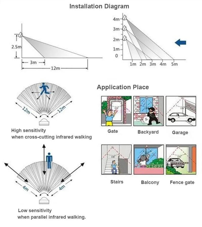 Ночью он может быть активирован движением и выключен на рассвете (светильник включается только ночью).
