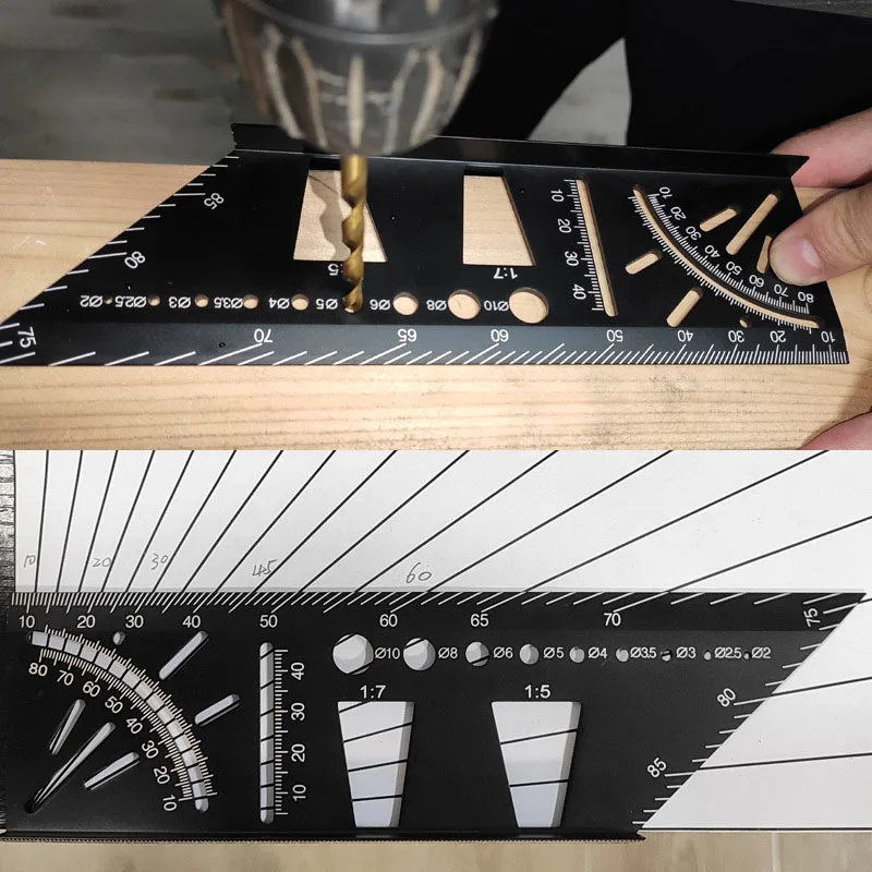 Функция Идеально подходит для трехмерной маркировки, измерения 45 и 90 градусов. Может использоваться в качестве маркировочного датчика для параллельных линий. Легко читать Четкая гравировальная Метрическая шкала, точная и легко читаемая. Сверло для определения диаметра сверла. Удобный Тонкая полировальная поверхность, удобная в руке и простая в использовании. Поможет вам повысить эффективность работы и сэкономить время на деревообрабатывающих проектах. Технические характеристики: Тип: измерительная линейка Материал: Алюминий из алюминиевого сплава