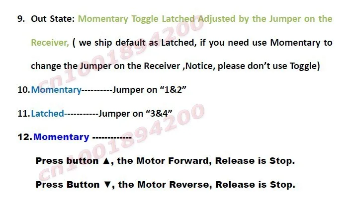 (Мы отправляем товары только по умолчанию как защелкивается, если вам нужно использовать мгновенного действия, чтобы изменить перемычка на приемник, обратите внимание, пожалуйста, не используйте переключения)