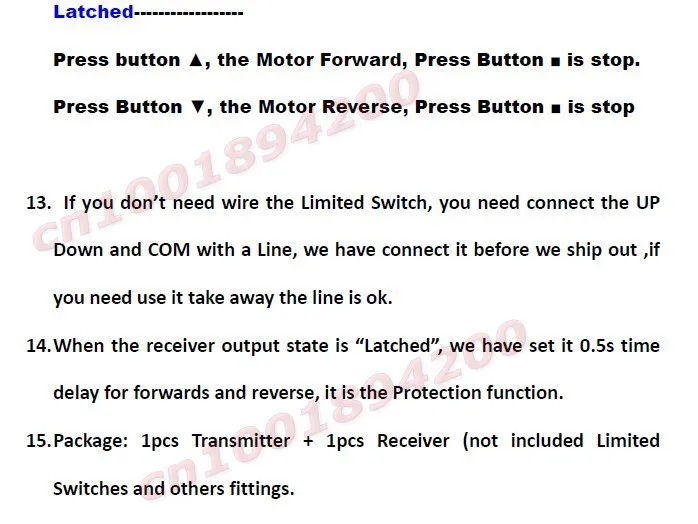 7. Если вам не нужна провода ограниченный переключатель, необходимо подключить с крышкой вверх/вниз и COM со строчкой, у нас есть подключить его до того, как мы отправим заказанный Вами, если вам нужно использовать его забрать линии, что все в порядке.