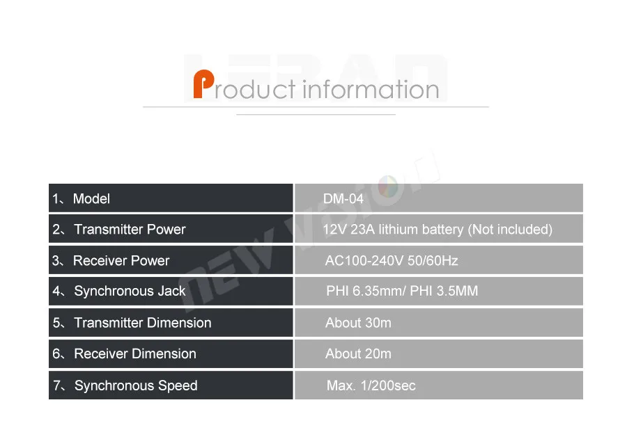 Мощность питания: приемник переменного тока: 100-240V 50/60Hz трансмиттером 12V 23A (входит в комплект)