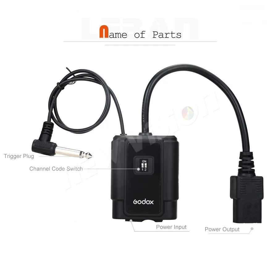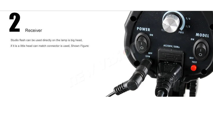 2. Подключите Кабельные Клеммы приемника к флэш-стробоскопическому разъему питания и разъему питания переменного тока отдельно