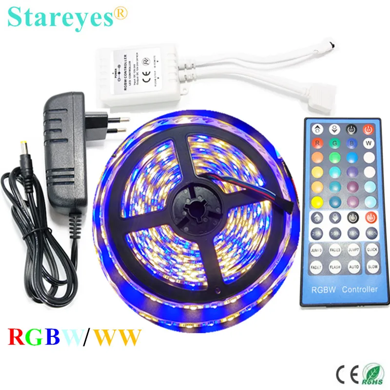Не водонепроницаемый 5050 5 м RGB W/полоса WW + адаптер питания 3A + пульт дистанционного управления 40 клавишами