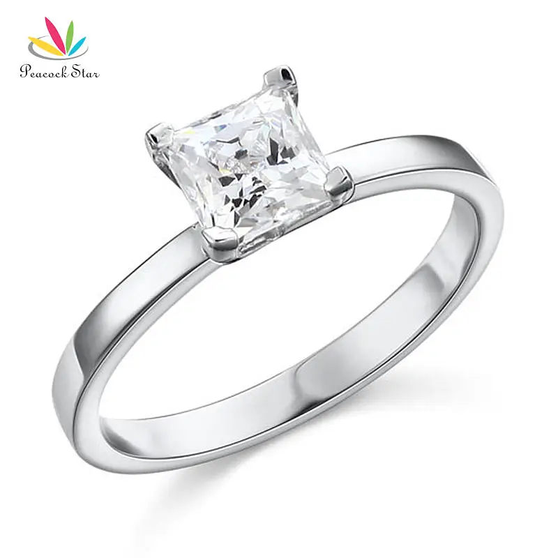 Павлин звезда стерлингового Solid 925 серебро Косынка Свадебные Юбилей Обручение кольцо 1 карат Принцесса Cut CFR8025