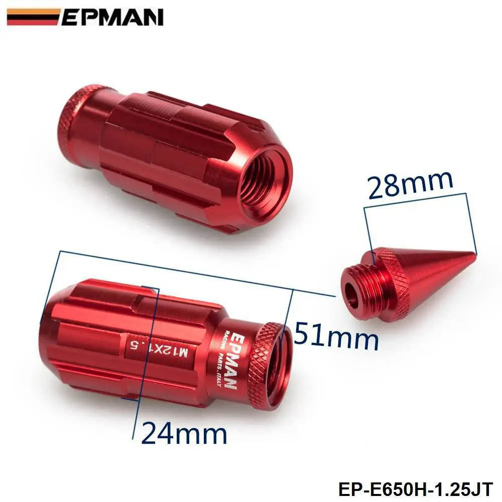EPMAN - Racing алюминиевые замочные гайки с шипами 20 шт. 12x1,25 Вт/ключ для Nissan Subaru Suzuki EP-E650H-1.25JT