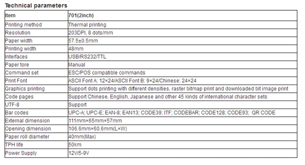 58 мм термопанельный принтер, скорость печати 90 ммсекция, последов...
