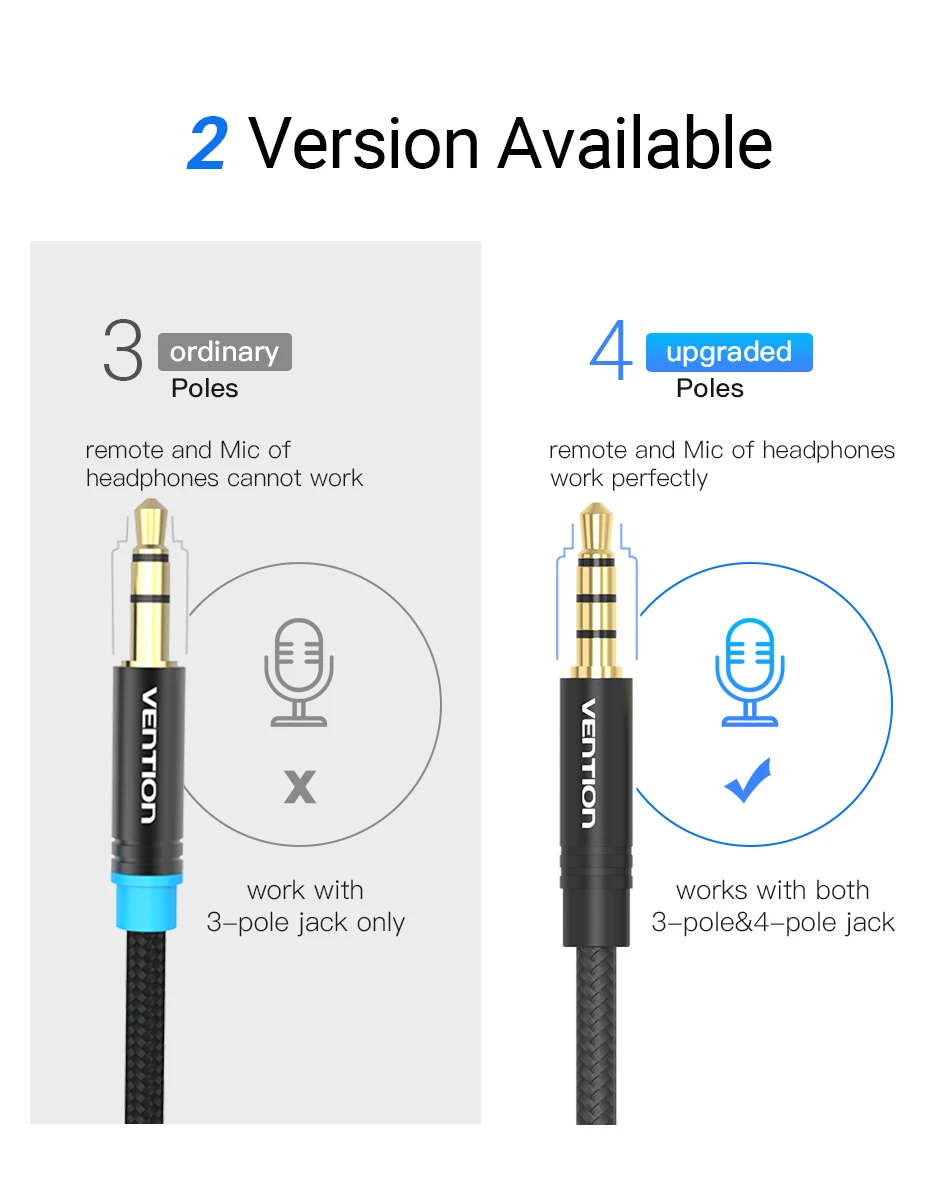 Vention Jack 3.5 Aux Extension Cable for Car Laptop Mini PC TV Xiaomi Huawei Stereo 3.5 mm Jack Headphone Speaker Cable Auxiliar