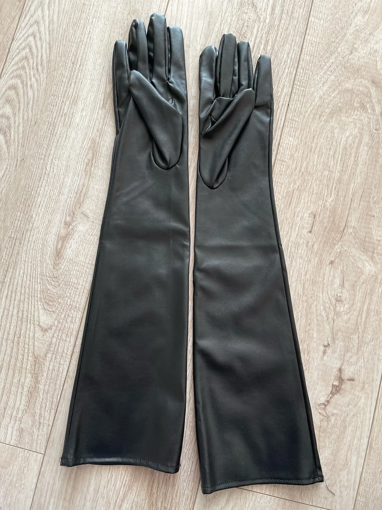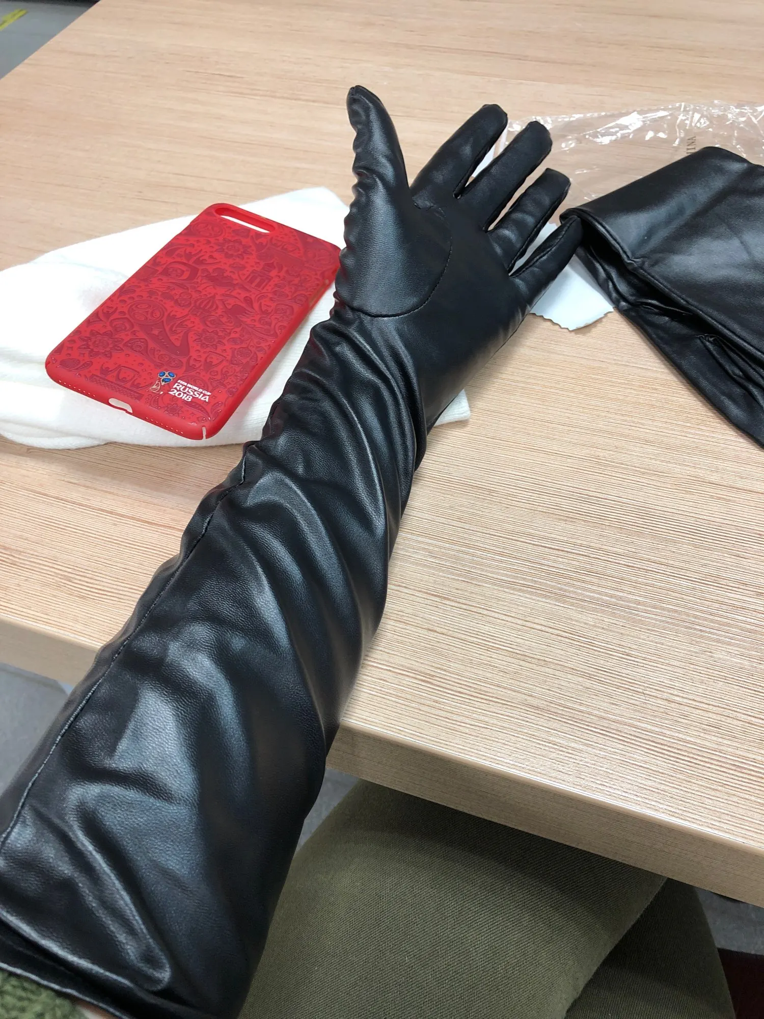 Перчатки женские длинные из искусственной кожи, теплые, 2 цвета, 2018