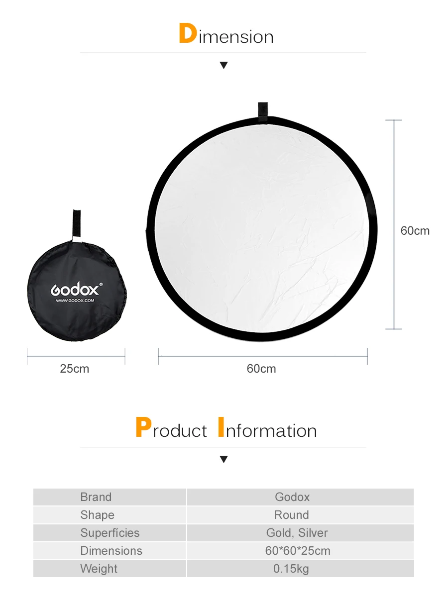 Портативный складной светильник Godox, Круглый отражатель для фотосъемки, 24 дюйма, 60 см, 2 в 1, диск для фотостудии