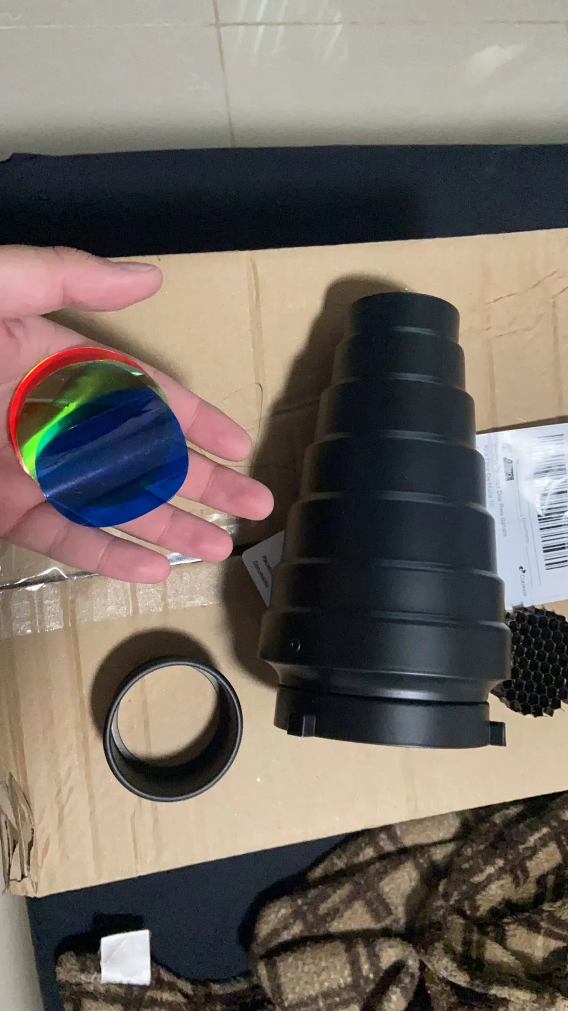 Новый заказ, который я делаю у этого продавца и снова очень счастлив. 1 месяц до Канарских островов и отлично упакован и защищен. В этом случае я заказал 3 единицы и без проблем, они идеально подходят к монтажу Bowens, и они приходят Snoot с их набором из 4 гелей (синий, зеленый, красный и желтый), диффузор и сеть. Таможня связалась со мной, чтобы запросить документацию о покупке, но я получил ее дома без дополнительной оплаты. Я оставляю вам несколько фотографий, как всегда, ссылка на полученный продукт.