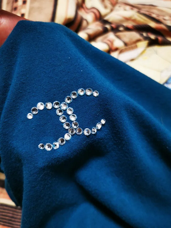 Стазы идеальны!!!!! Очень рекомендую! они стеклянные, сверкают даже при плохом освещении! Переливаются так, что "глаз не оторвешь"! Приклеиваются без усилий, чуть утюгом на II с паром без нажима на секунд 20-30 и готово!
