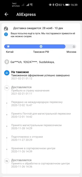 Страна: RU Доставка: Cainiao Standard For Special Goods 27.02.2021