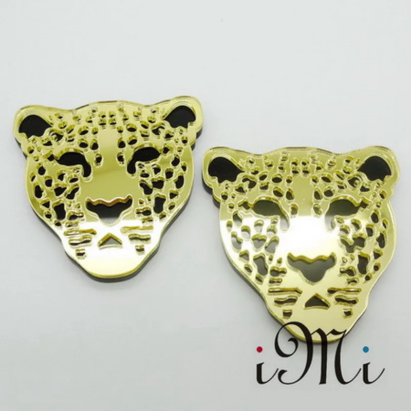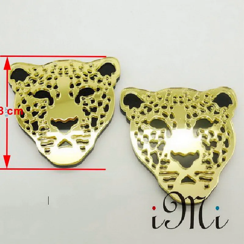 Украшения в стиле хип-хоп, зеркальные акриловые большие серьги-гвоздики с головой леопарда