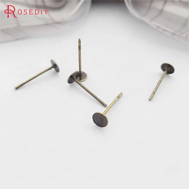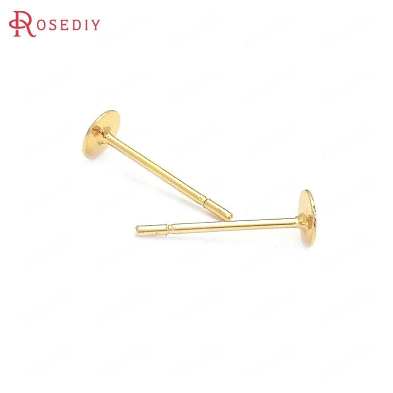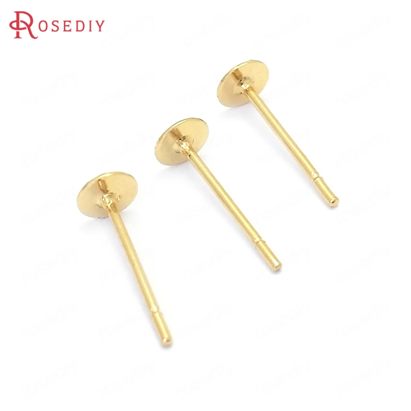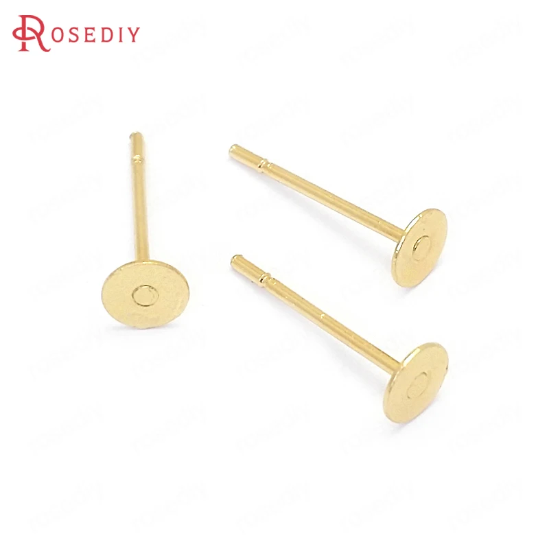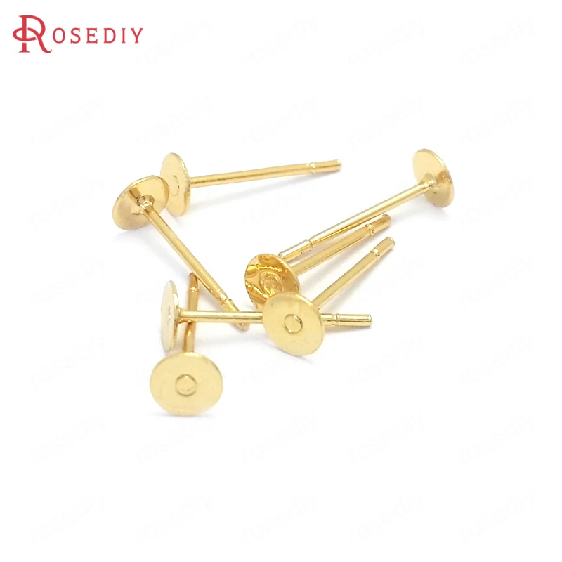 (30596-G)100 шт. Размер палочки 4 мм 24 к золотого цвета латунь и сталь иглы плоские гвоздики серьги ювелирные изделия принадлежности Diy аксессуары