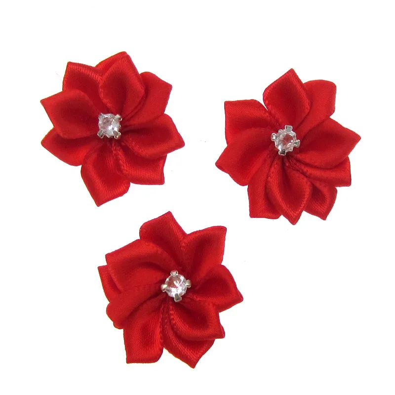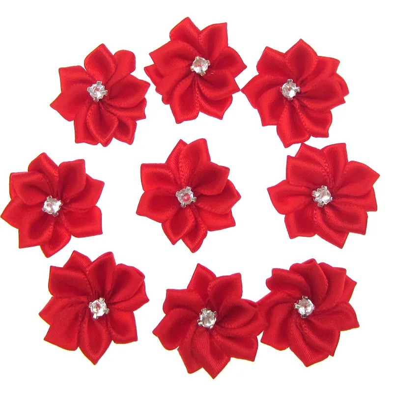 40 шт. красные маленькие атласные цветы, стразы, Цветочная аппликация, швейное украшение, свадебная одежда 2,8 см