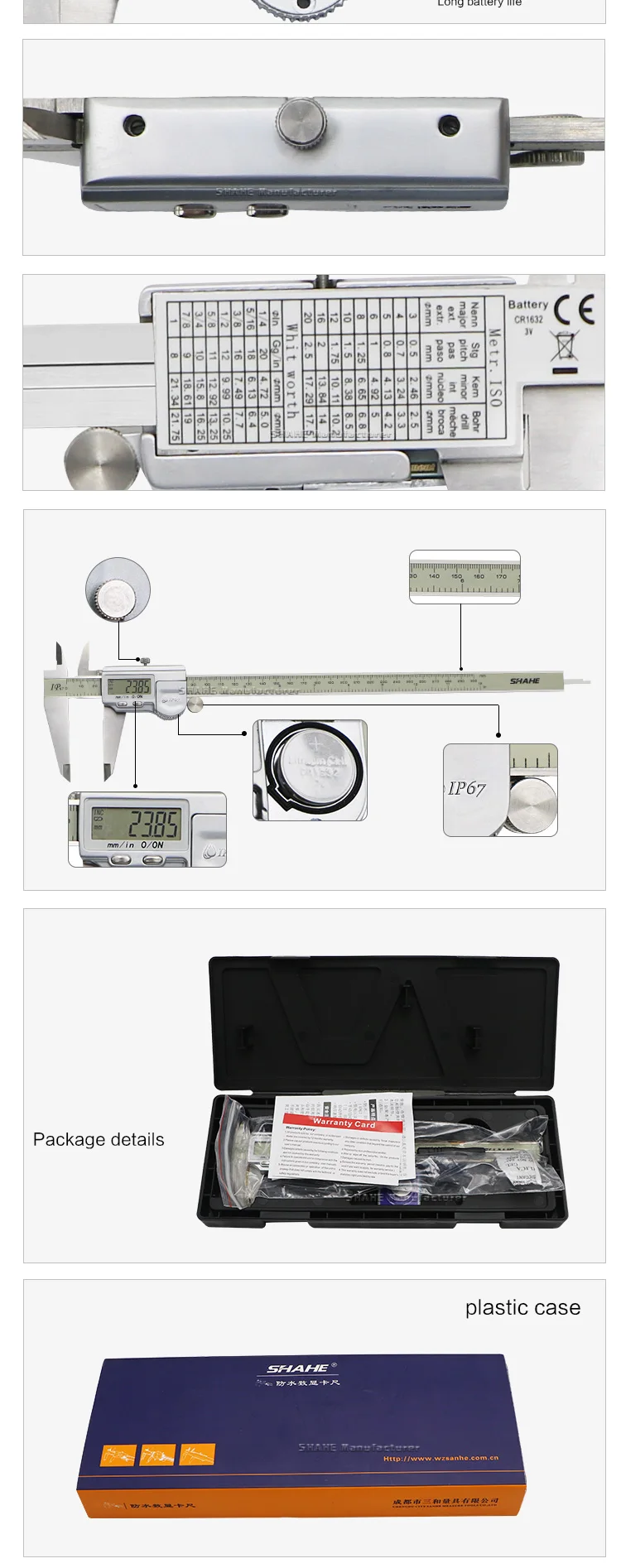1.Водонепроницаемый IP67, закаленная Нержавеющая Сталь Основные весы/Измерительные челюсти2. Ролик тонкой регулировки/накатанный запорный винт для более удобного измерения и чтения3. Относительный/абсолютный обмен измерений в любом положении4. Высококачественная стеклянная фиксированная сетка, стабильная, прочная и высокая точность5. Быстрый дисплей измеряемого значения на ЖК-экране, отсутствие ошибки в скорости6. Две функциональные кнопки с лезвием для измерения глубины7. С кнопкой включения-выключения, автоматическое выключение8. Нулевая Настройка в любом положении, конвертация измерительной системы мм/дюйма9. Измерение для ID, OD, глубины и измерения шага