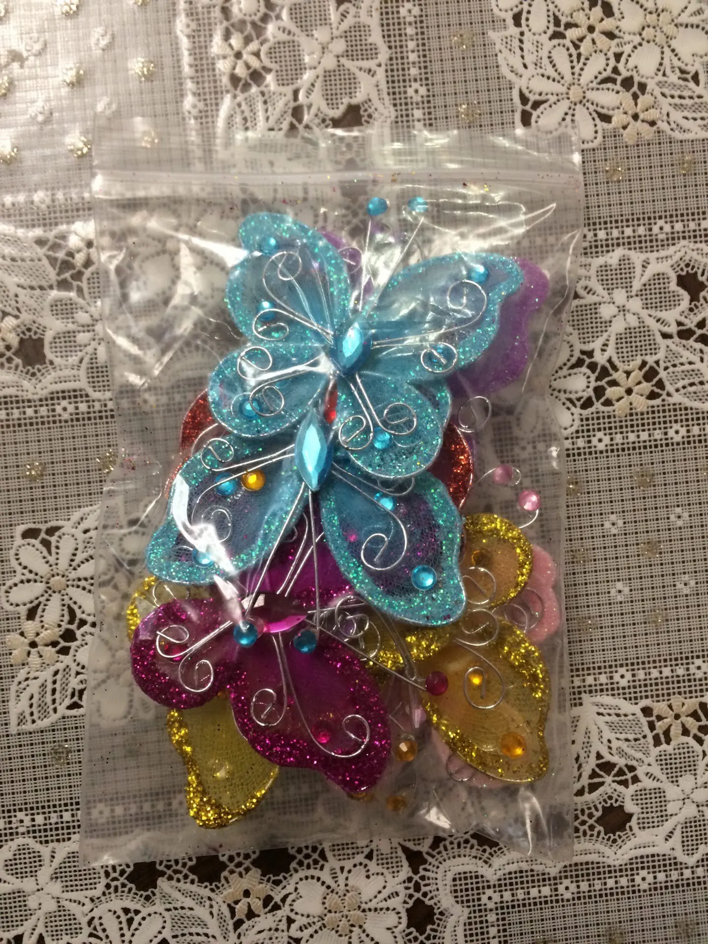 Красивые яркие бабочки жаль, что без крепления, надо что-то придумывать.