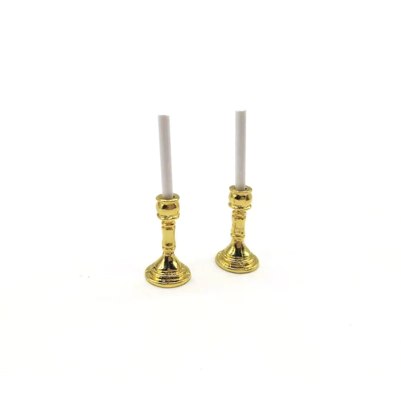 Миниатюрные аксессуары для кукольного домика, подсвечник-палочка, металлический, золотого цвета, украшение для дома, рождественской вечеринки, центральное украшение стола, 112