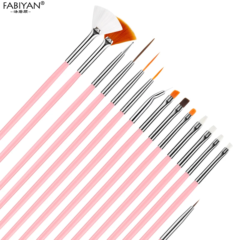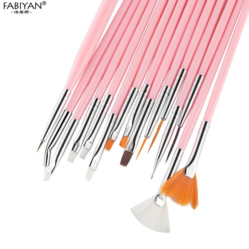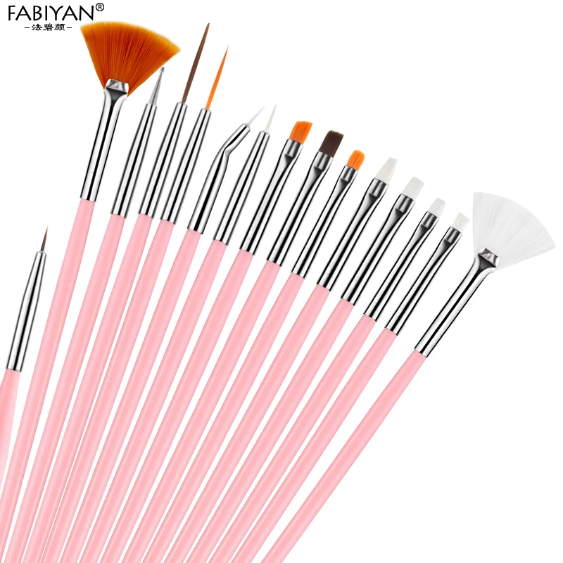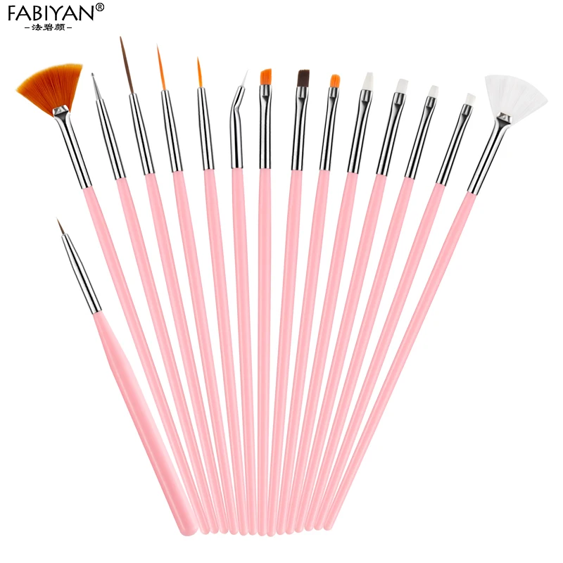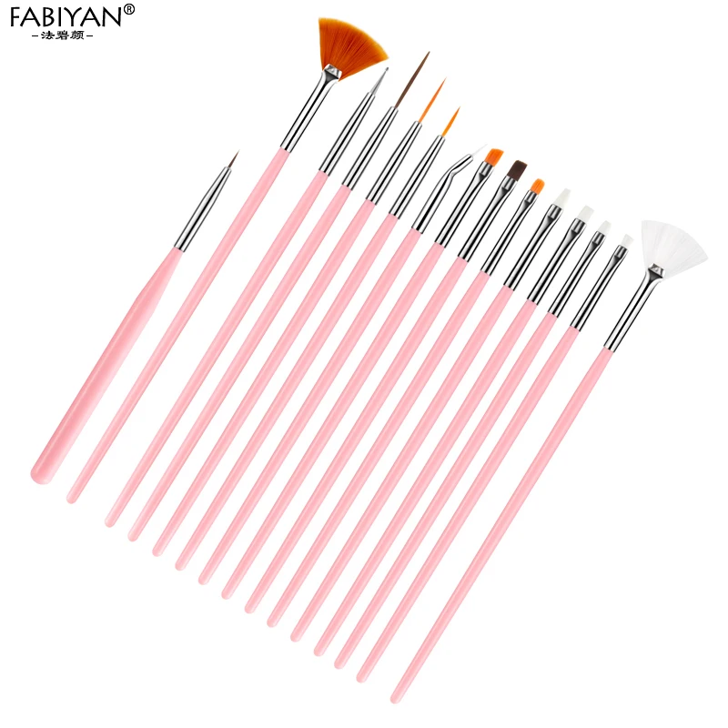 15 шт. набор розовый дизайн ногтей советы полировка гель УФ акриловая кисть для рисования Кисть Вентилятор плоский резной инструмент для маникюра