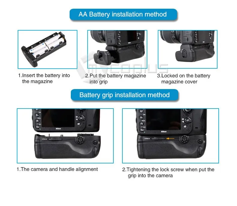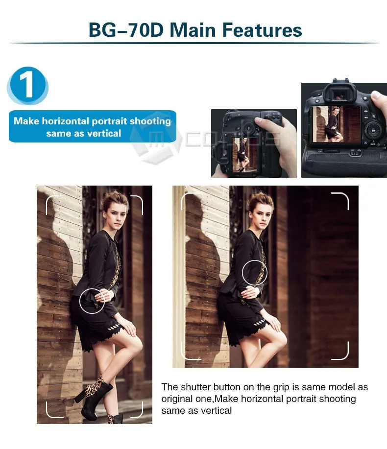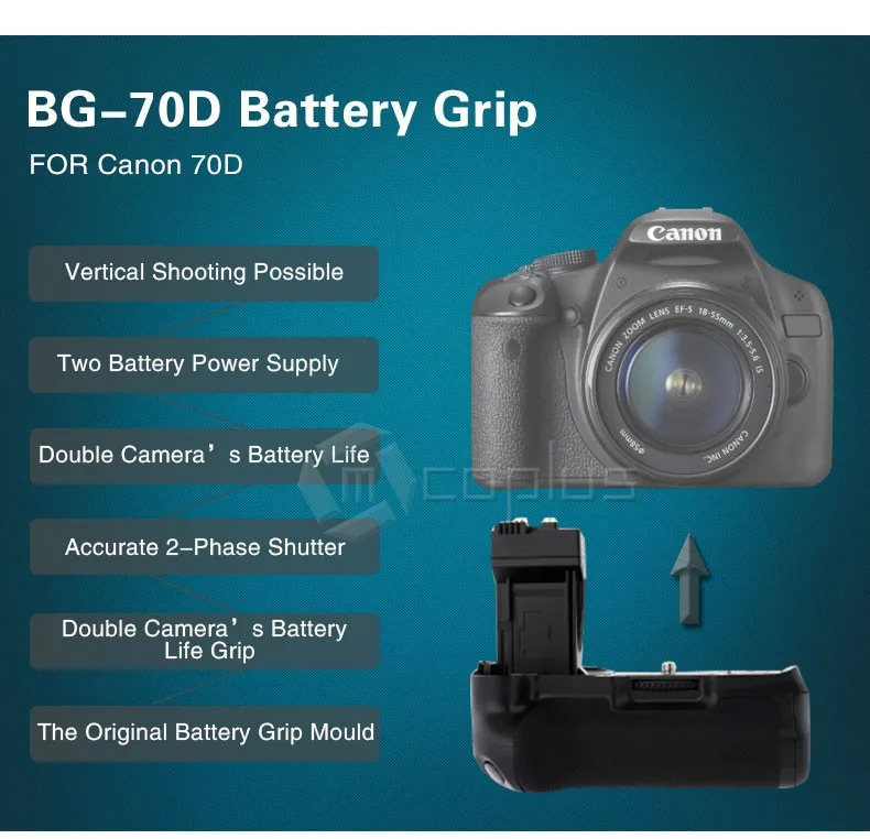 -Батарейный блок разработан специально для цифровой зеркальной камеры Canon EOS 70D. Он вмещает до двух LP-E6 батарею