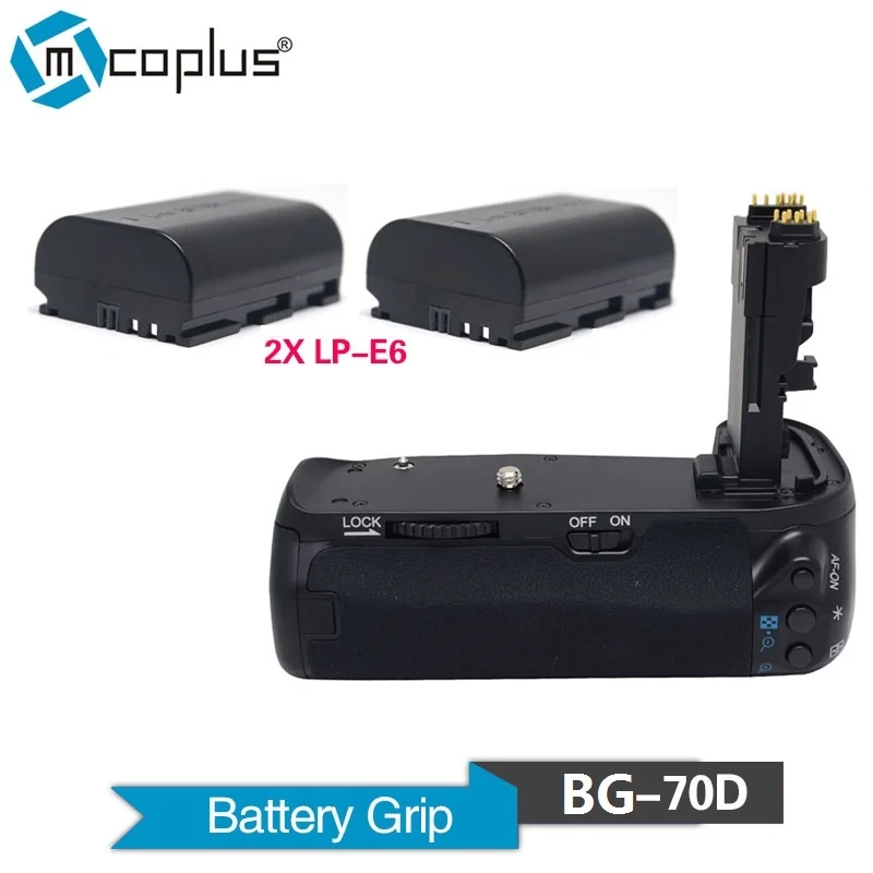 Mcoplus BG-70D вертикальный держатель батарейного отсека с 2x LP-E6 батареей для Canon EOS 70D 80D DSLR камеры как BG-E14 Meike MK-70D