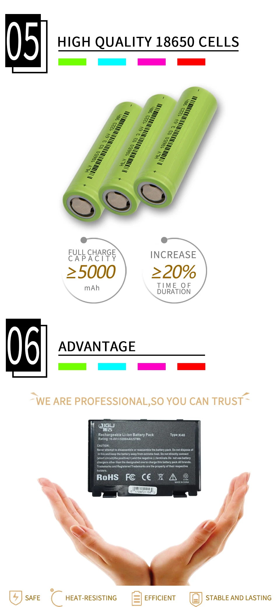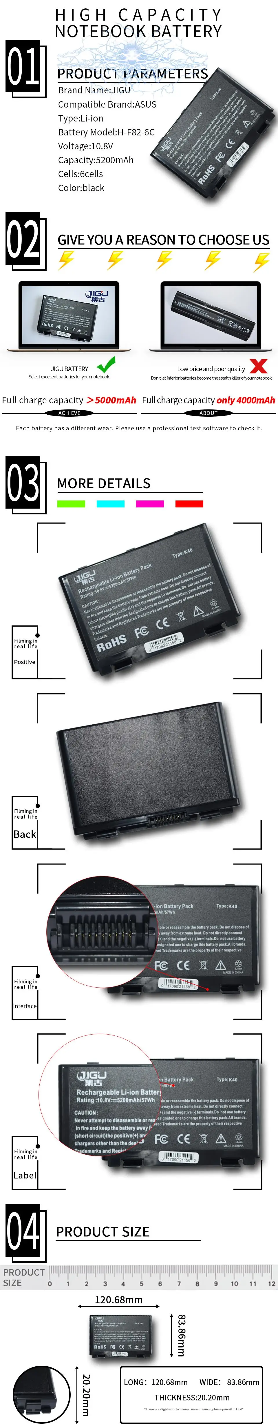 JIGU Laptop Battery For Asus K50AB K70 A32-F52 F82 K50I K60IJ K40 K40in K50 K50in K50ij K50ab K42j K51 K60 K61 K70 P81 X5A X5E