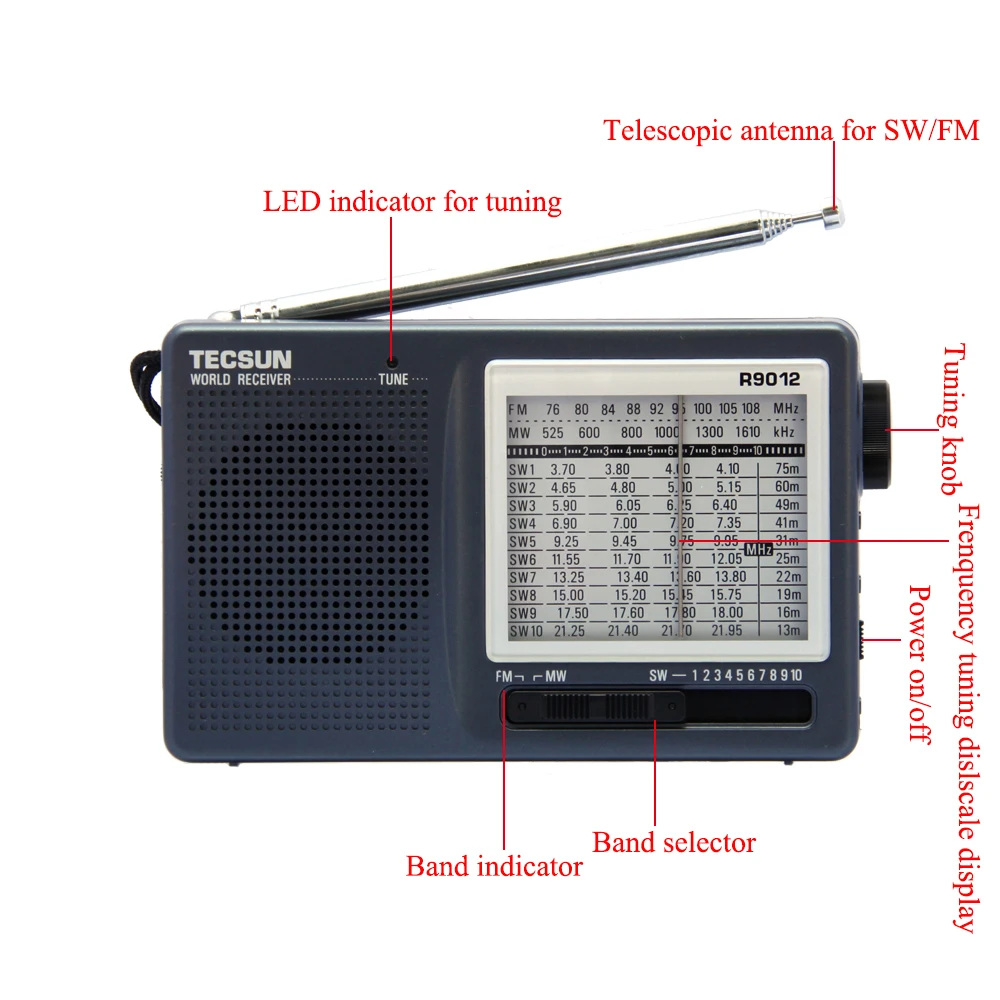 TECSUN R-9012 FMAMSW радио 12 диапазонов портативный приемник радио Высокая чувствительность селективность низкий уровень шума FMAMSW радио