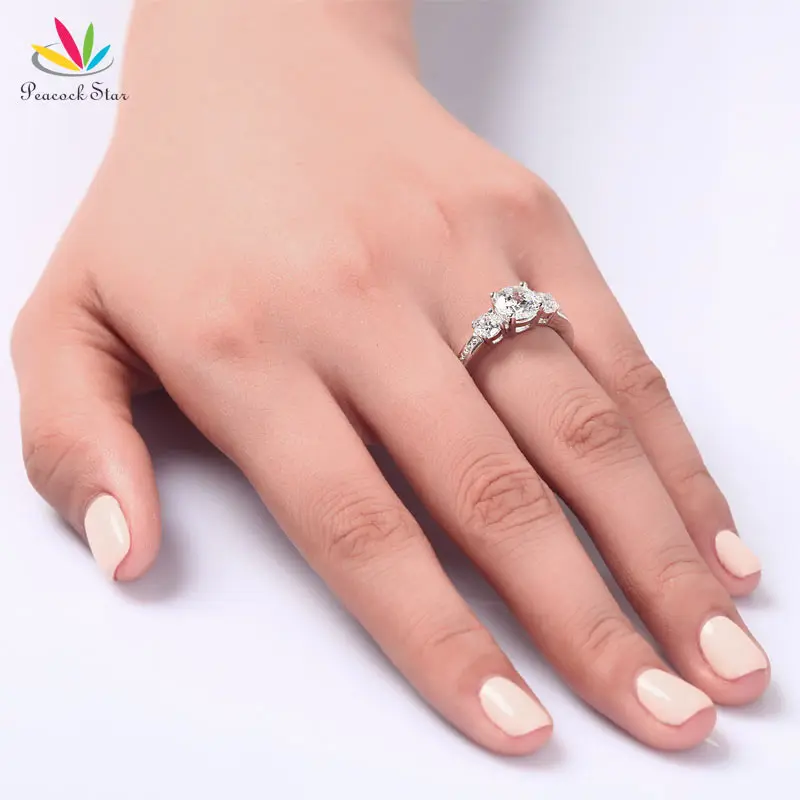 Женское Обручальное кольцо из серебра 925 пробы с павлиньими звездами и тремя камнями, 1,25 карата, CFR8065