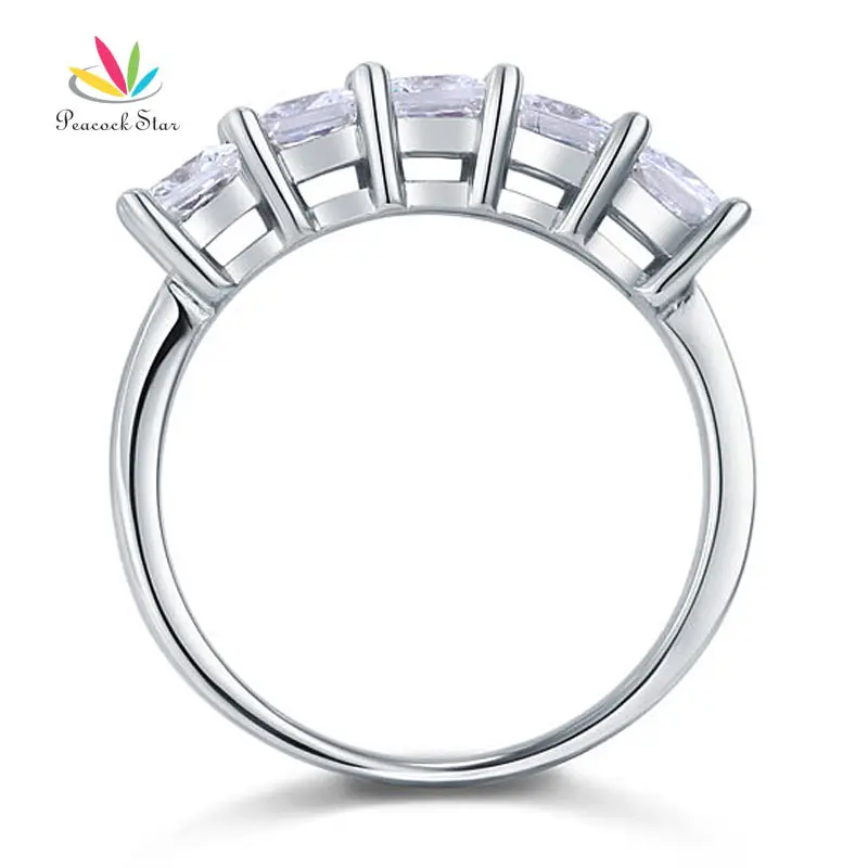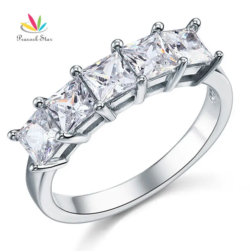 "Павлин" Звездная Принцесса Cut Пять камень 1,25 Ct Твердые 925 пробы серебряные свадебные горный хрусталь обручальное кольцо ювелирные изделия CFR8072