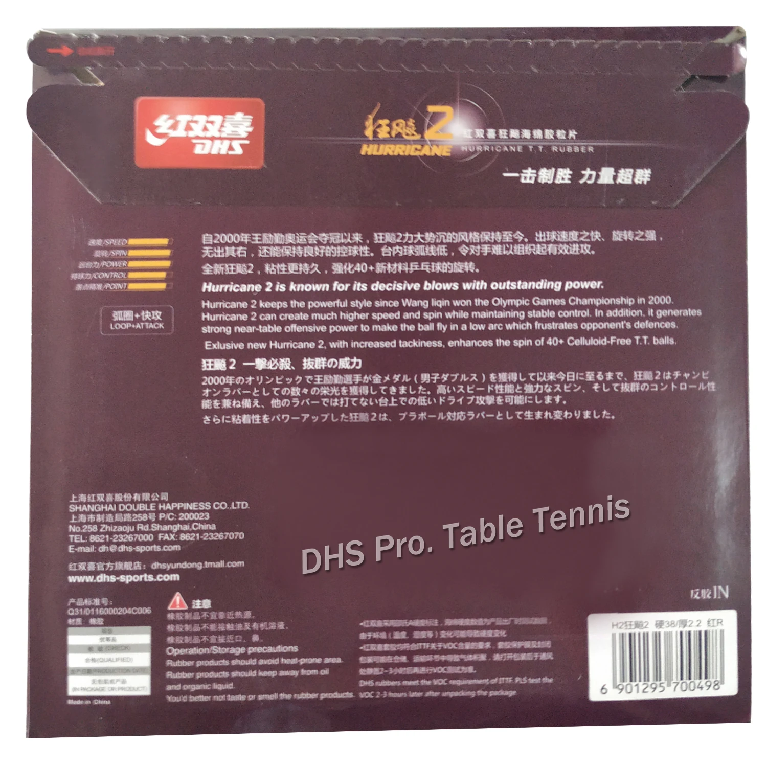 DHS Hurricane 2 Hurricane e2, резинка с губкой для пинг-понга для настольного тенниса Hurricane-2, 2,2 мм