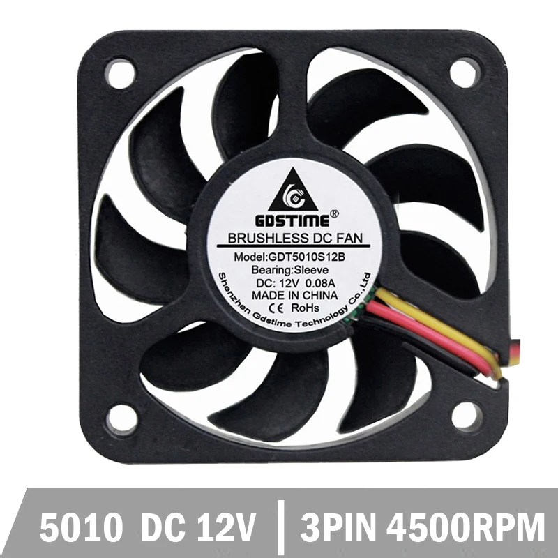 10 шт. Gdstime Новый DC 5010 50*50*10 12V 3Pin 50 мм 5 см промышленный вентилятор охлаждения