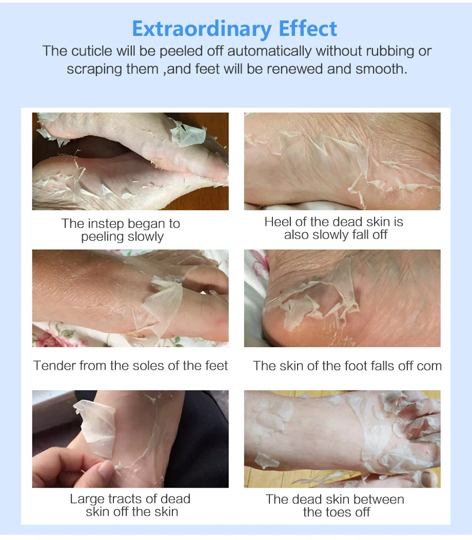 Руководство пользователя-правильная инструкция очень важна, будет влиять на эффект маски для ног.1. Вымойте и Замочите ноги горячей водой, а затем высушите ноги.2. Используйте ножницы, чтобы вырезать Уплотнение Маски для ног посылка.3. Носите маску для ног, мы рекомендуем носить пару нормальных носков снаружи, чтобы обеспечить достаточный контакт с эссенцией.4. Снимите маску для ног через 35-95 минут, затем очистите ноги.5. Большинство людей начинают очищать омертвевшую кожу после 48 часов использования, но из-за различных типов кожи кому-то может потребоваться 2-3 пары, пожалуйста, используйте маску для ног снова 48 часов позже.6. Не используйте маску, если у вас есть активный порез или ран.7. Мы предлагаем вам замочить ноги горячей водой после 48 часов использования.Примечание: после использования около 3-5 дней, старая стопа пустых отходов будет постепенно падать, 5-7 дней в этом процессе. Потому что метаболизм каждого человека отличается, поэтому время выпадения также отличается.