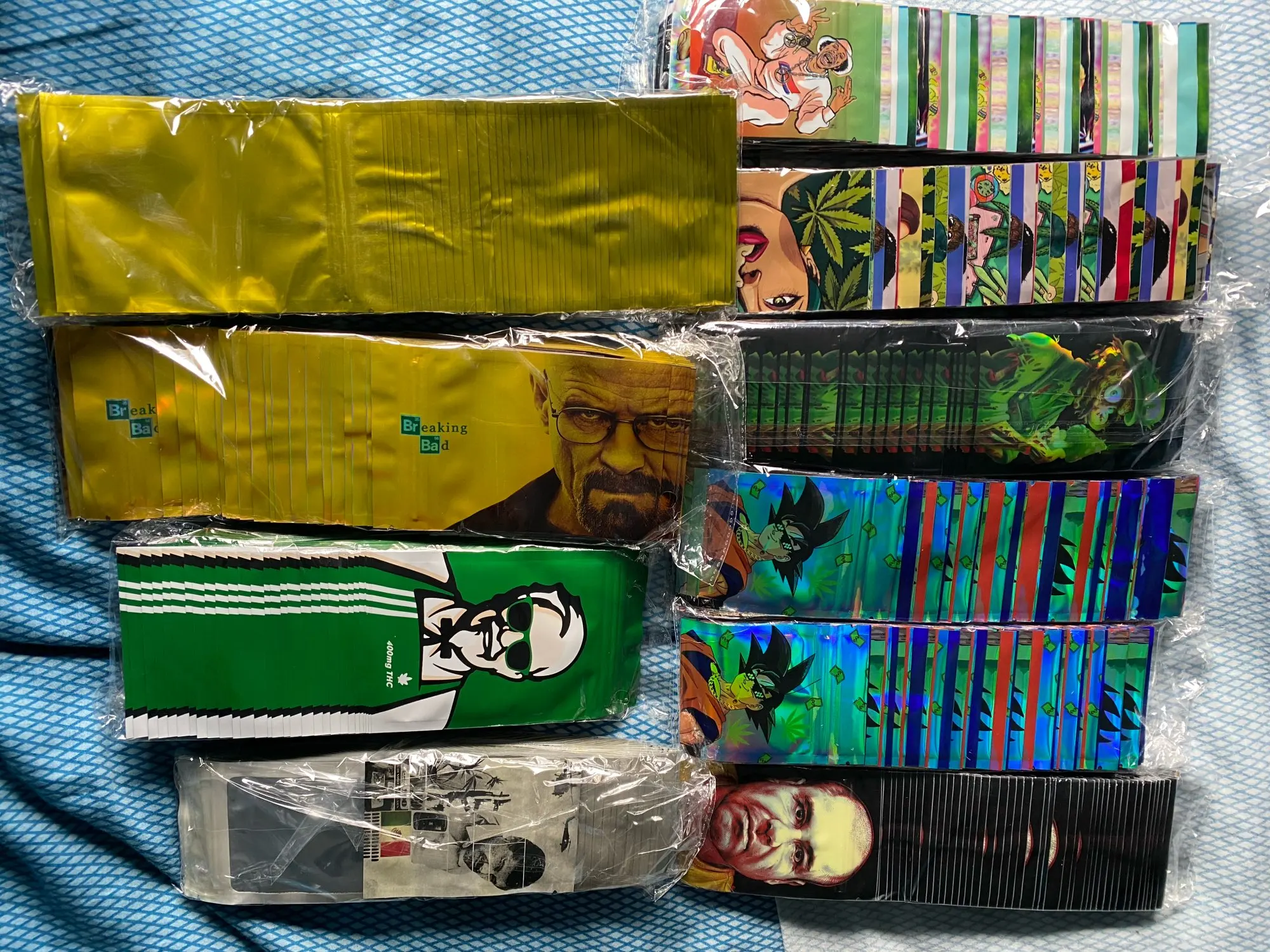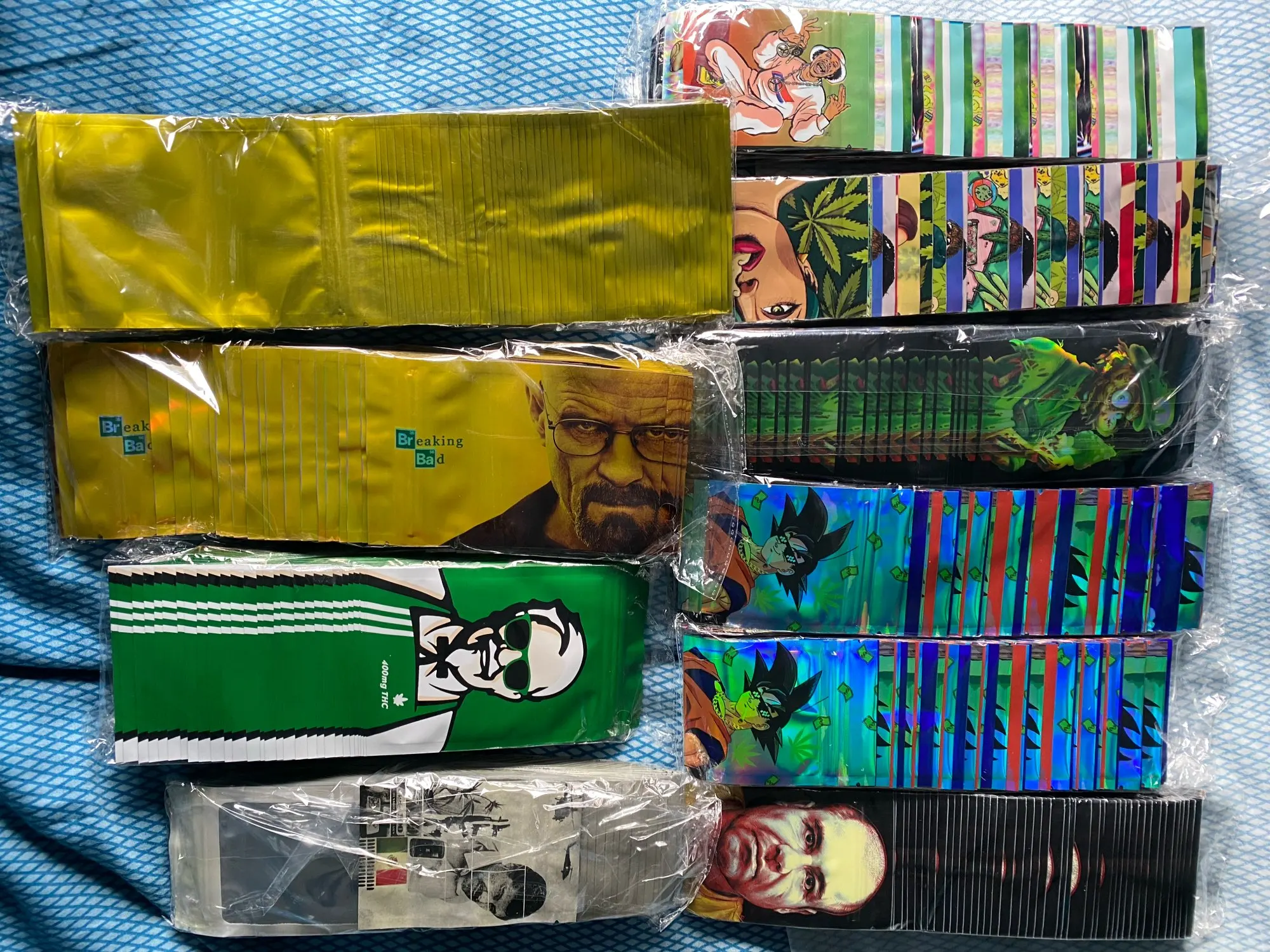 Упаковка пришла быстро, кажется правильным количеством. Хорошая упаковка доставлена безопасно. Высококачественные майларовые мешки, хорошо скрывают запах. Голографический Рисунок действительно блестит. Точное описание размера. Вмещает около восьмого цветка.