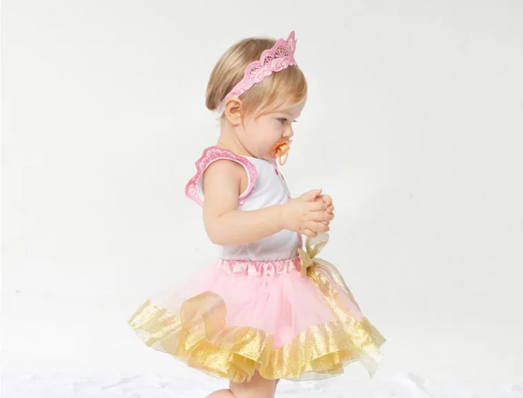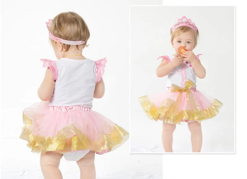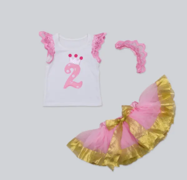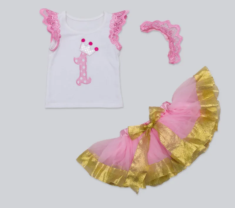 Новинка, одежда для маленьких девочек, Милая Кружевная футболка принцессы и пышная юбка и головной убор с розовой короной, комплект из 3 предметов, подарки на день рождения