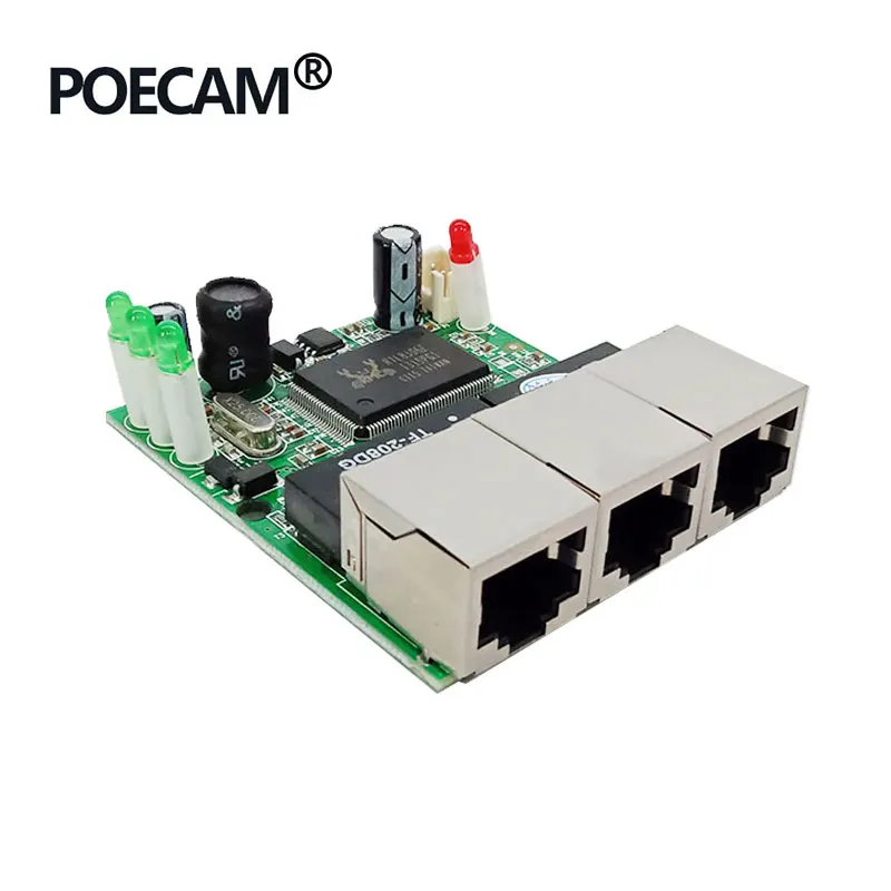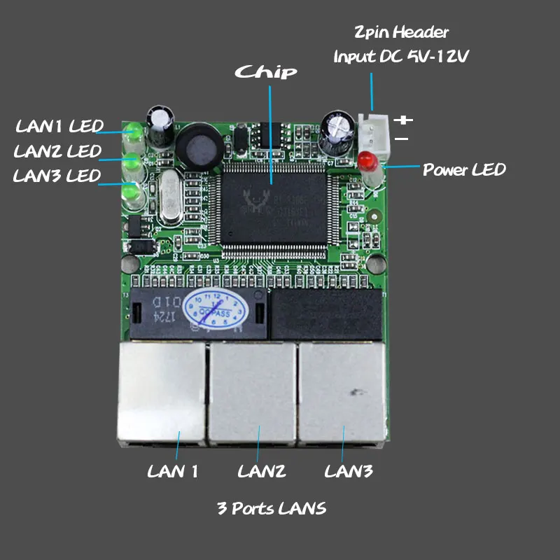Он предоставляет 3 порта Мбит/с,Используйте встроенную или встроенную машинуВнутренние порты расширения устройства, 3-портовый переключатель с хорошей теплоотдачей