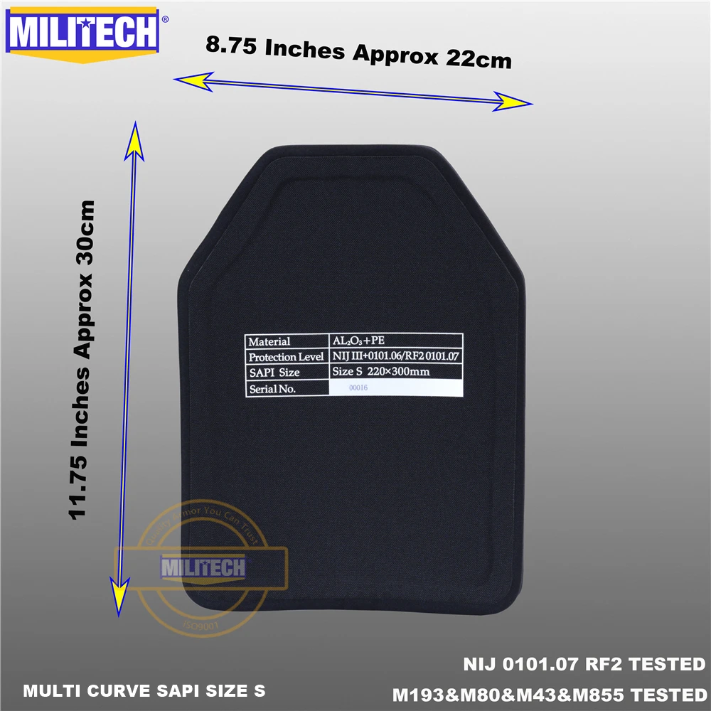 MILITECH One (1) кусок NIJ III + 0101,06 & NIJ 0101,07 RF2 отдельный глинозем (AKA AL2O3) и только композитный жесткий бронежилет из полиэтилена, доставка в комплект не входит.