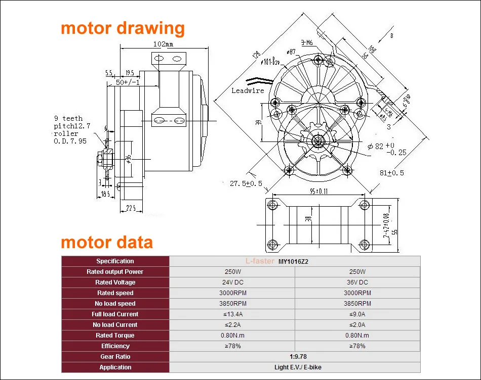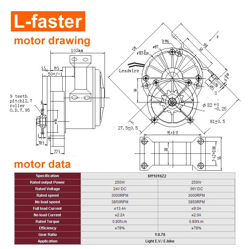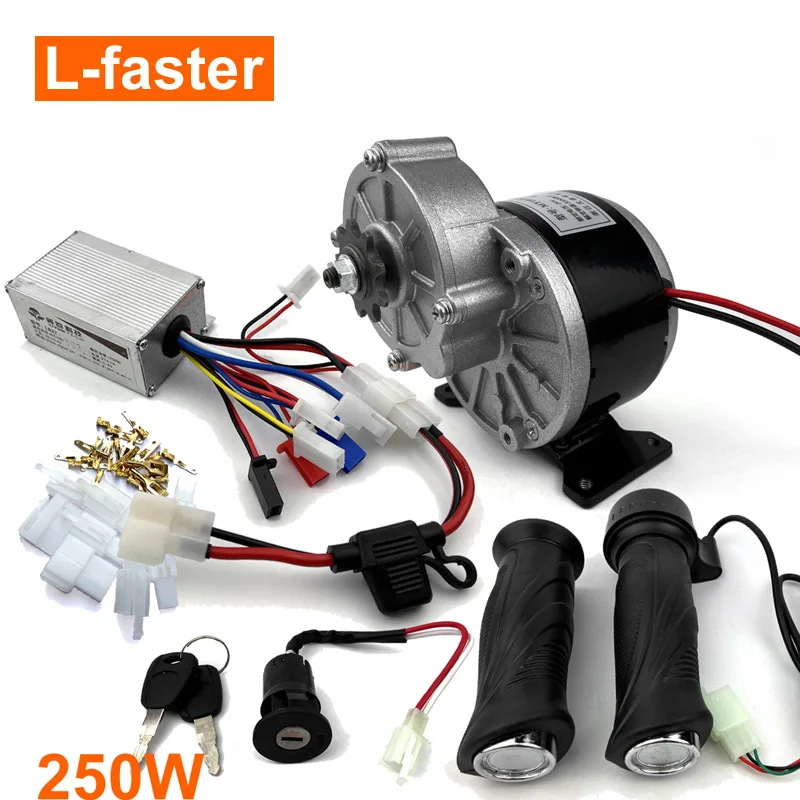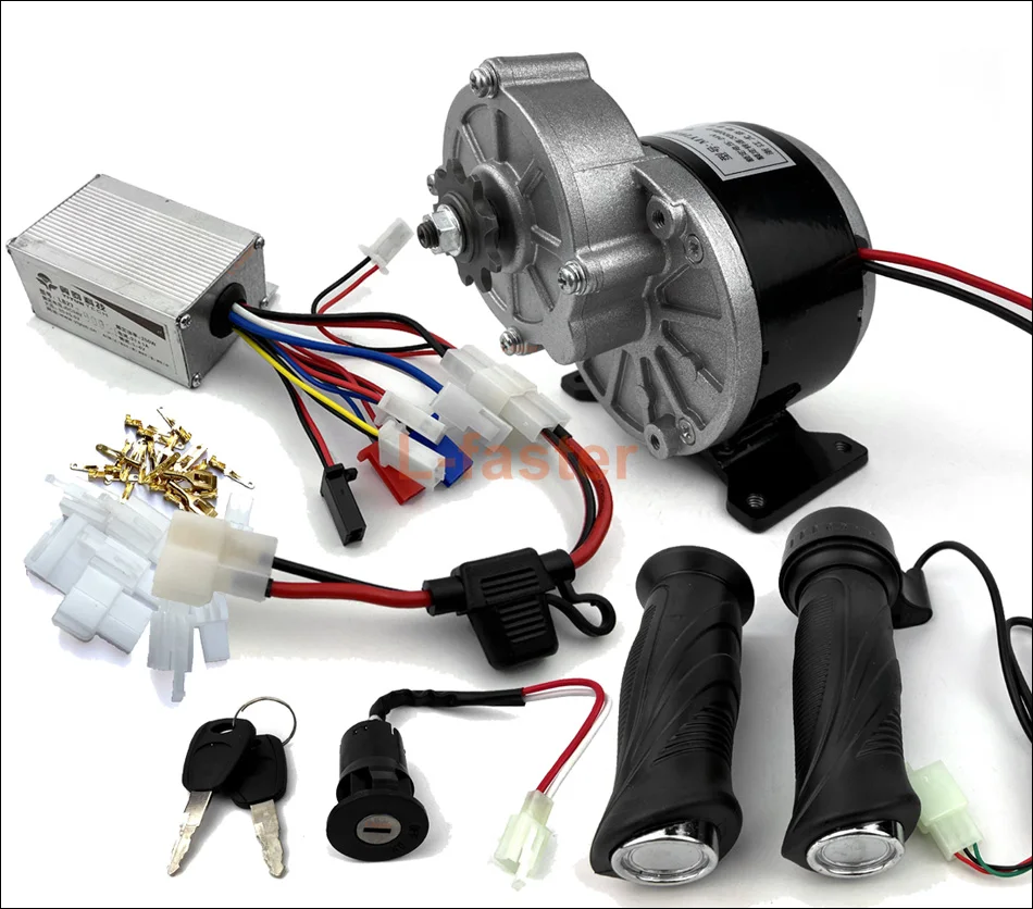 Этот товар представляет собой двигатель постоянного тока мощностью 250 Вт и контроллер, рукоятку дроссельной заслонки, кнопочный переключатель.