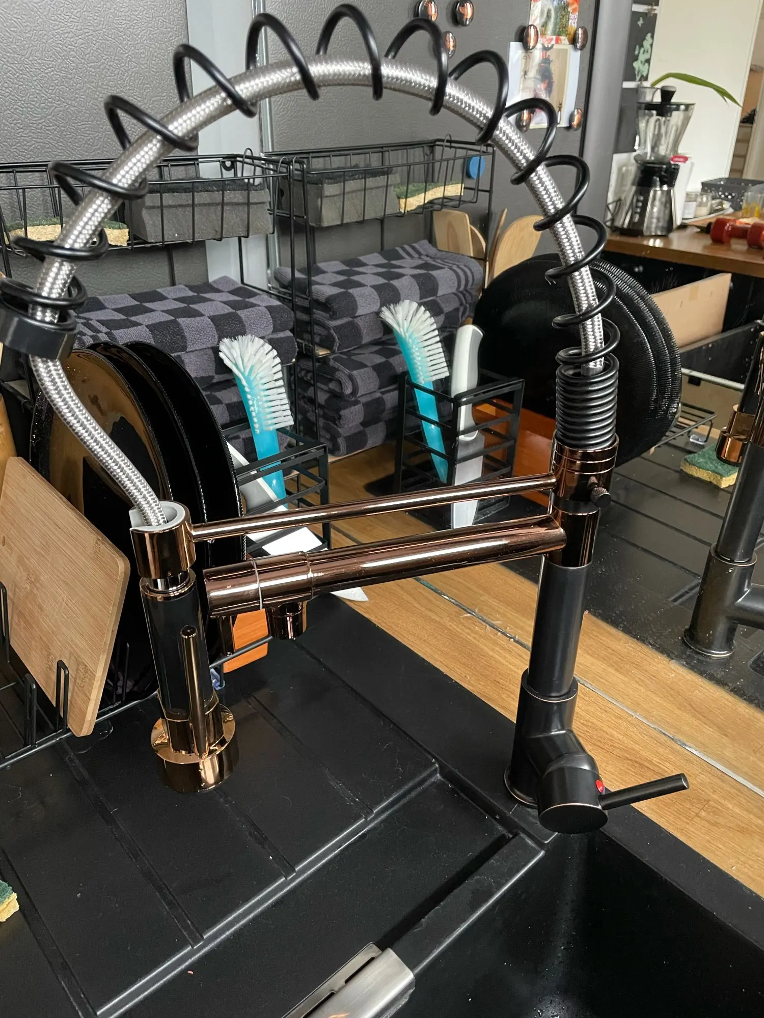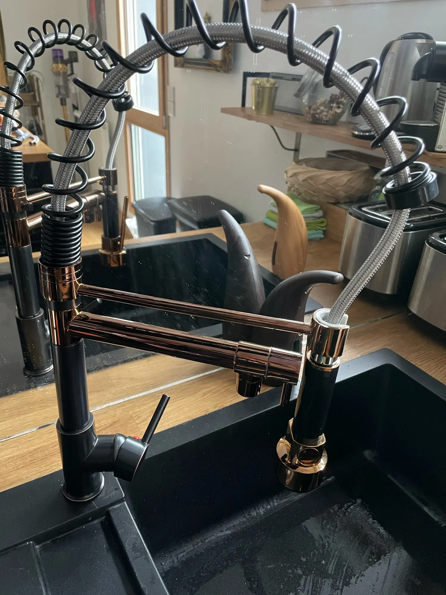 Rozin черный и розовый Золотой пружинный выдвижной кухонный кран для раковины Смеситель для горячей и холодной воды кран с двойным носиком на бортике