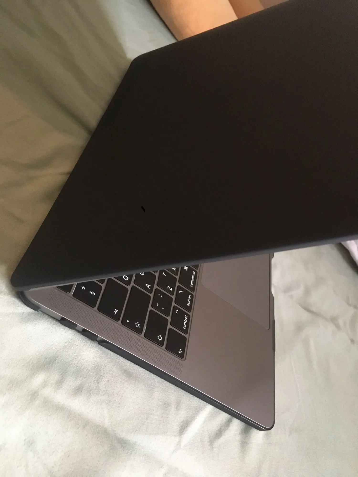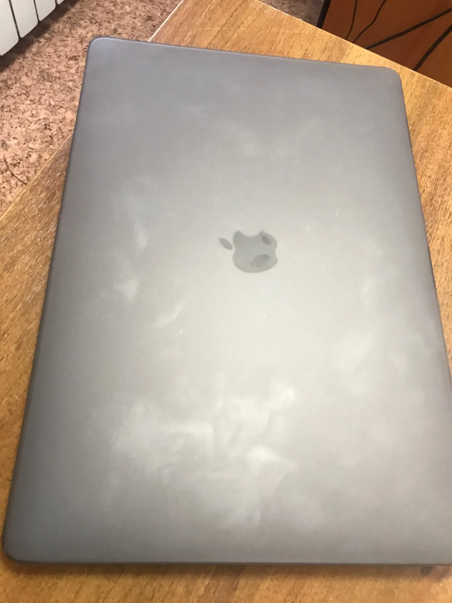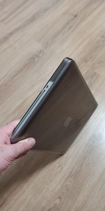 прозрачный матовый чехол. остаются следы от пальцев, выглядит не очень за одну носку ноутбука в рюкзаке на роботу и обратно, вечером на чехле появилась трещина в углу