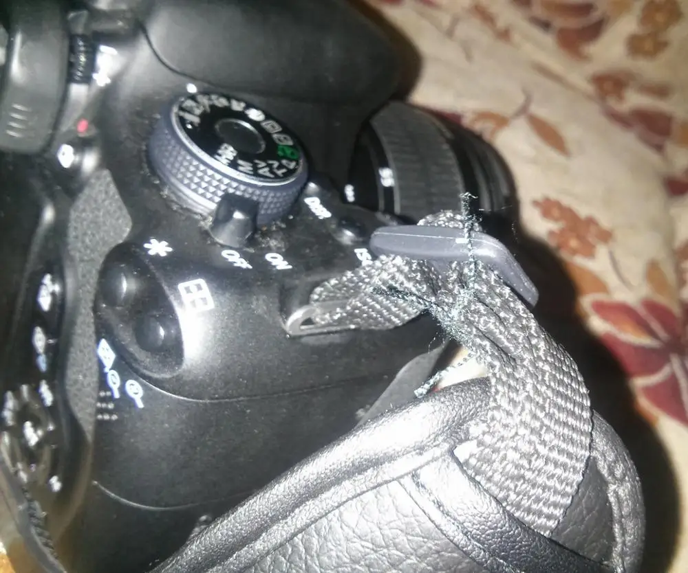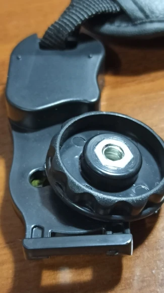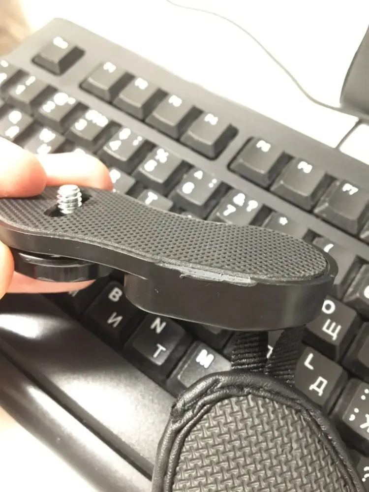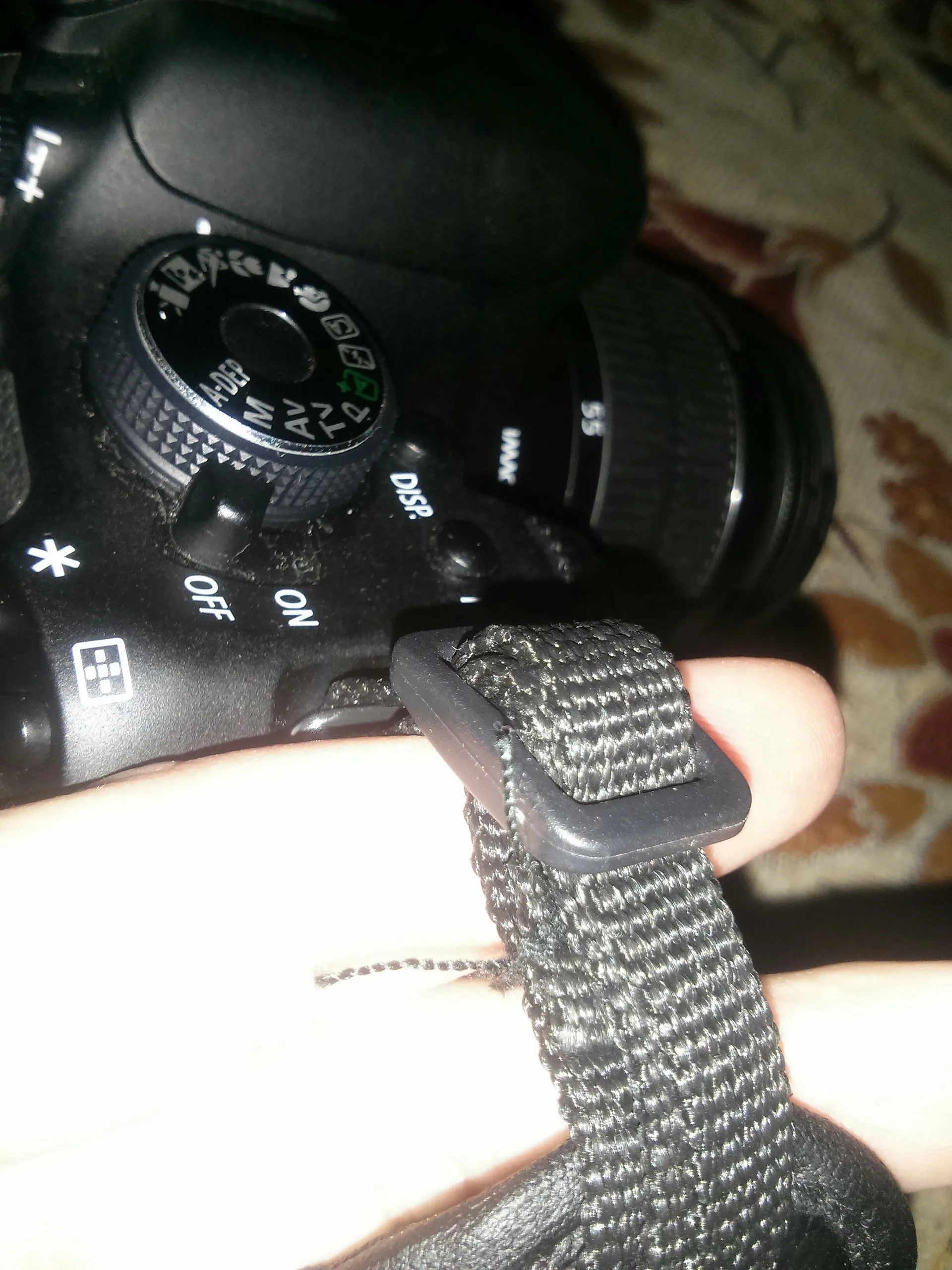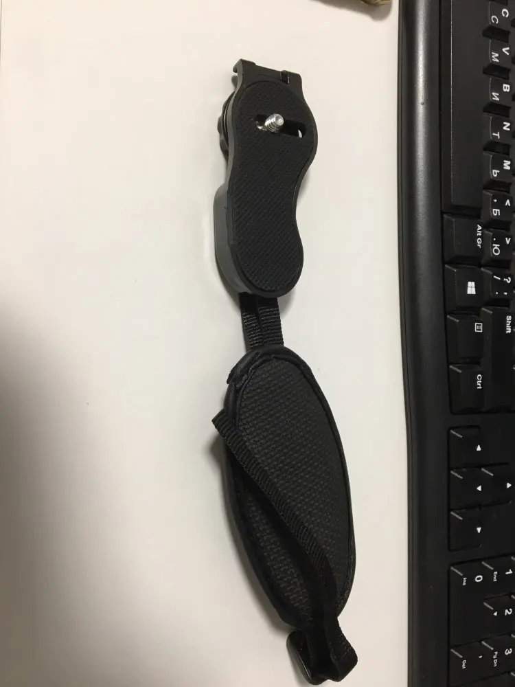 Оказался очень удобный ремешок, не надо изо всех сил держать фот, он висит на кисти. Перемычка снизу, которая держит ремешок, очень хлипкая, но можно перекинуть ремешок не через эту тонкую перемычку, а через корпус нижней пластины, так будет надёжнее.