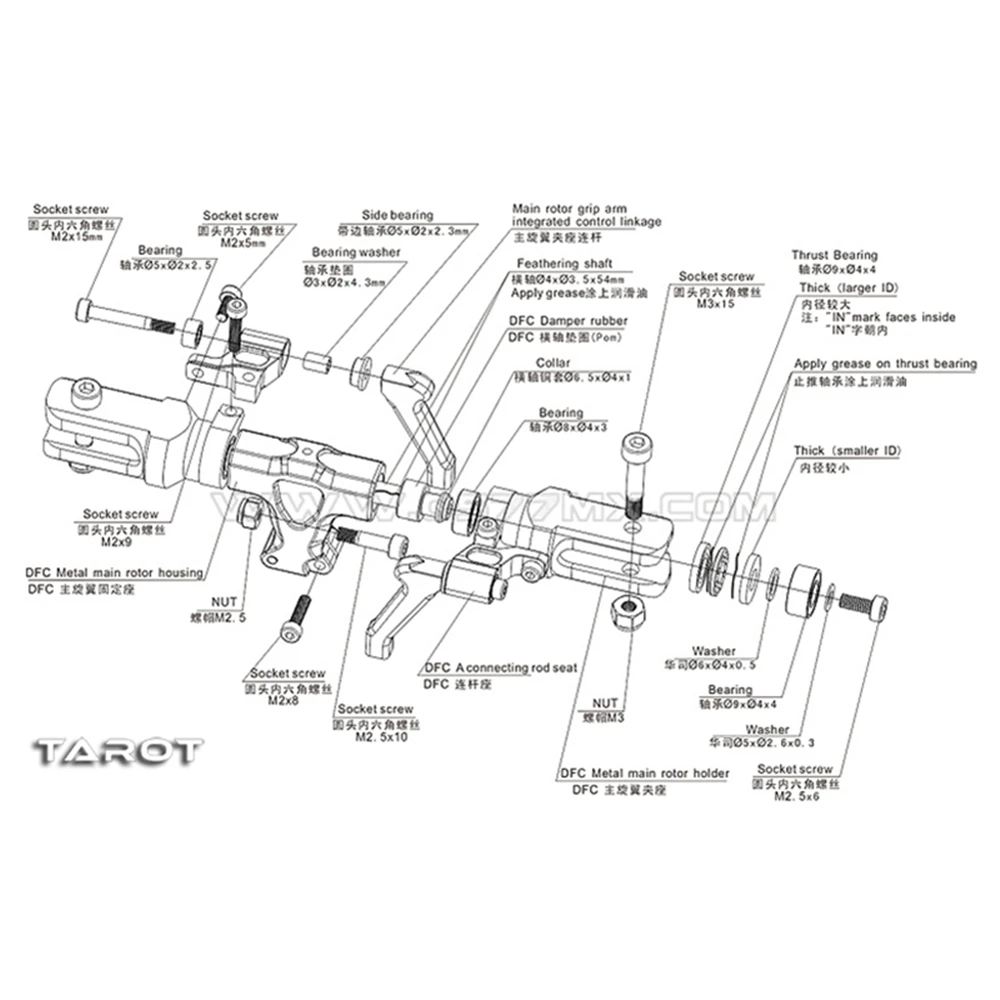 Принять 6061-T6, алюминиевый сплав CNC подвергая механической обработке, подходит для всех TAROT450 переустановить как DFC ротора головки. Использование сверхнизкого центра тяжести и короткого вала делает уровень ротора близким к CG тела, что может эффективно улучшить 3D действия, такие как рулон, поворот, маятник и т. Д. Это делает электрический вертолет более стабильным.