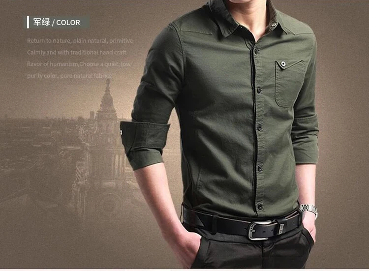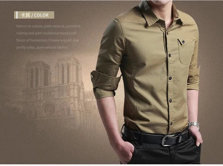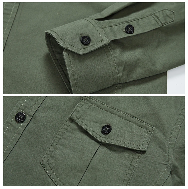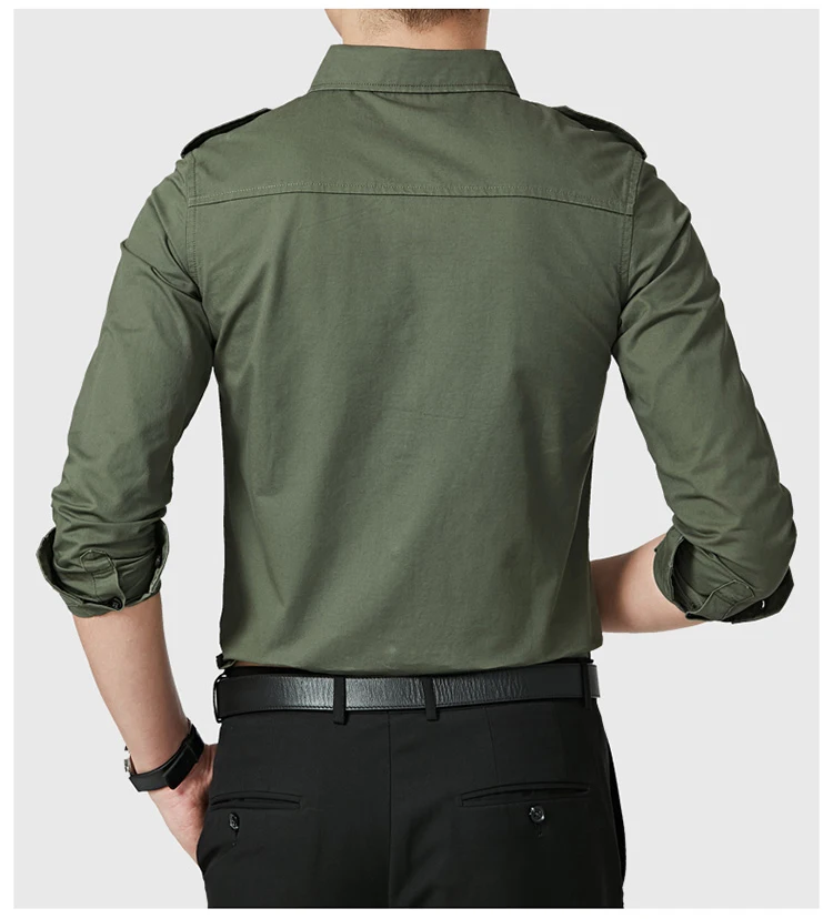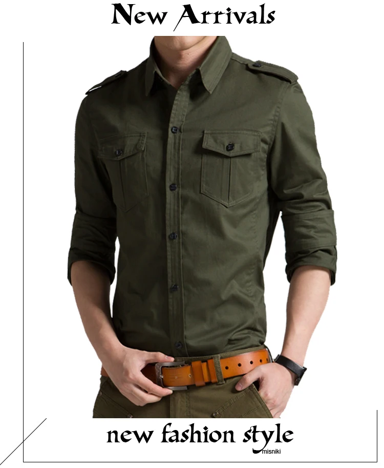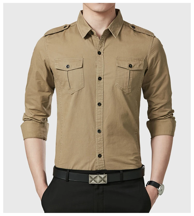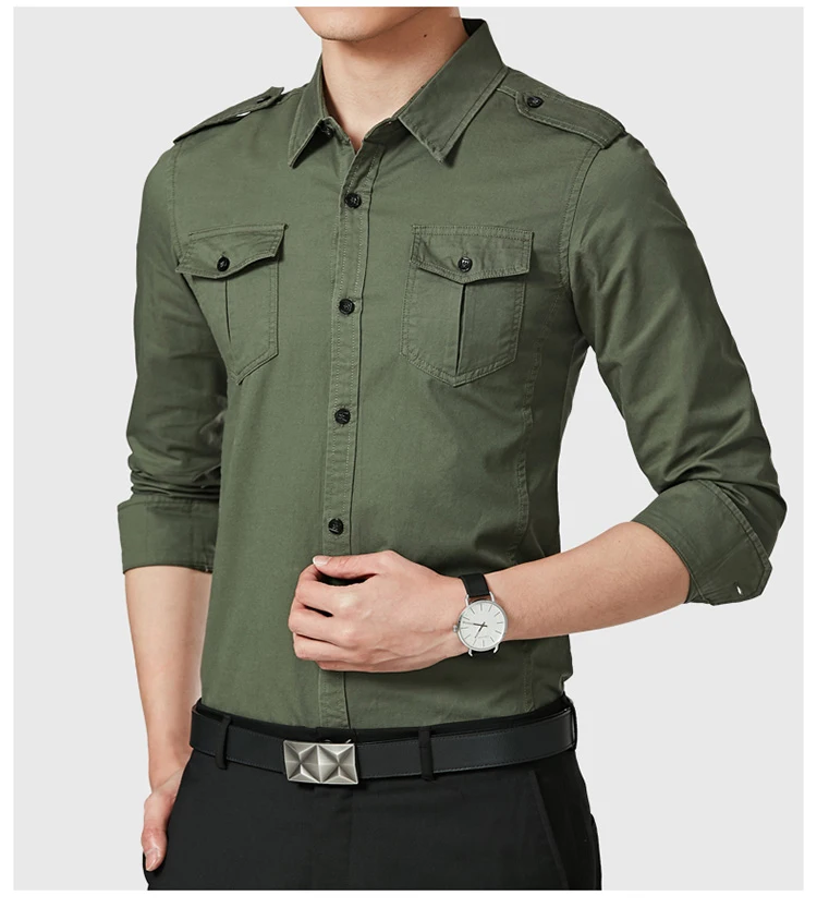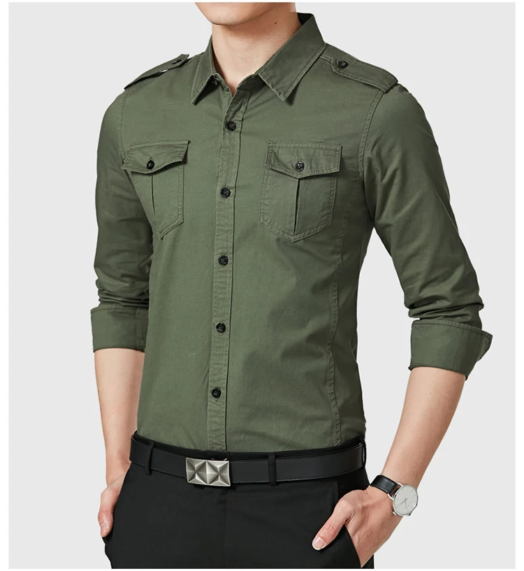 Мужская приталенная рубашка-карго с длинным рукавом, в стиле милитари