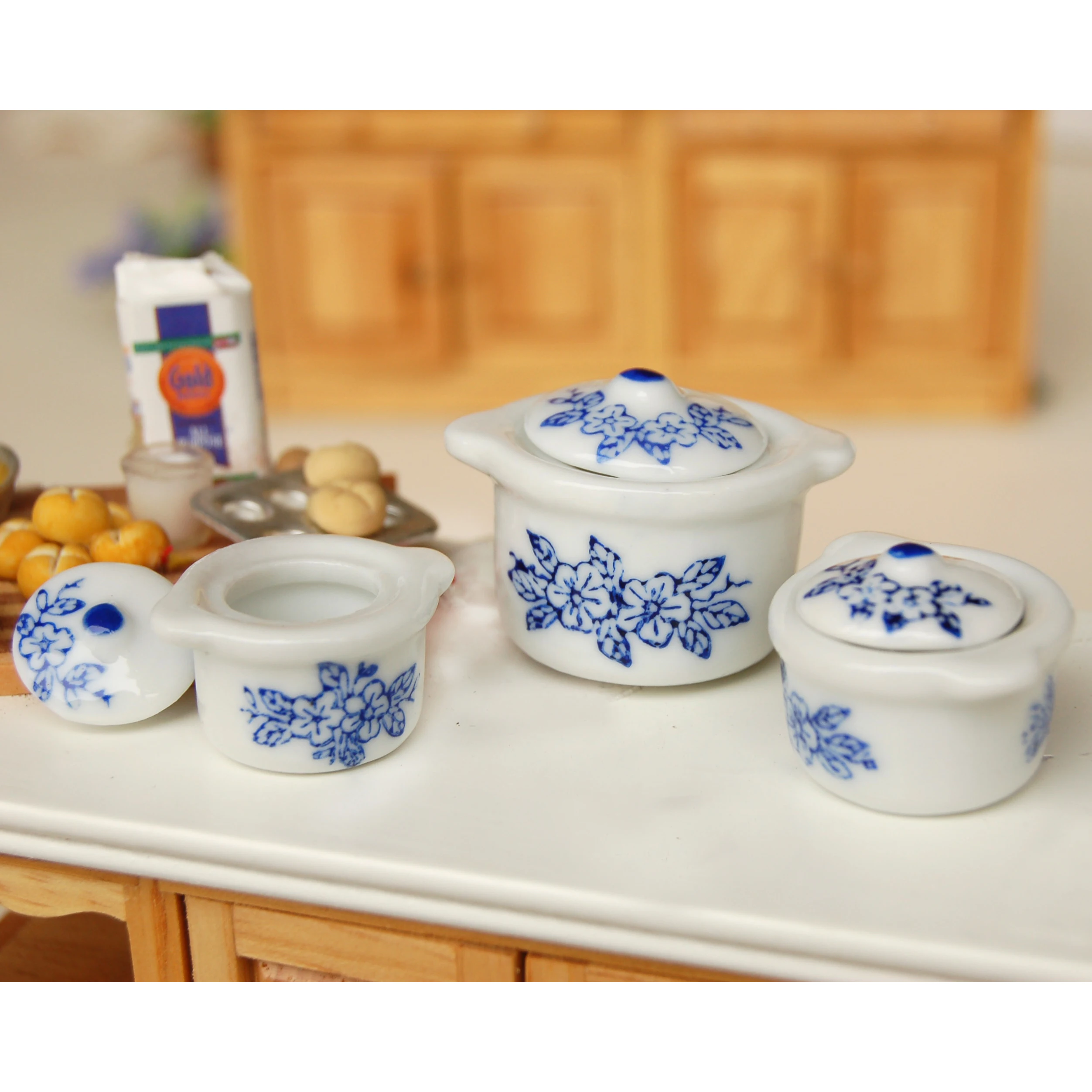 Миниатюрная кухонная посуда для кукольного домика ILAND 1:12, кастрюля, 3 шт., кастрюля для супа с крышкой, керамическая кастрюля DC070
