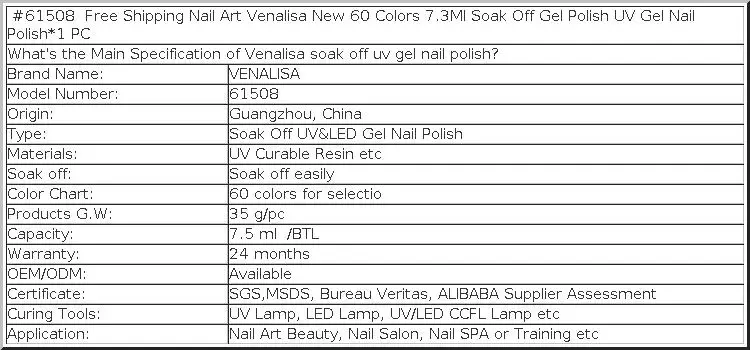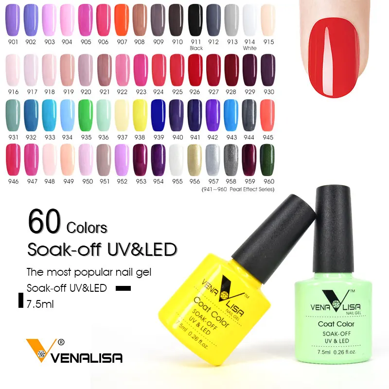 Venalisa хит продаж, СВЕТОДИОДНЫЙ УФ-гель, 60 цветов, s 7,5 мл, блестящий Гель-лак для ногтей, полный охват, чистый цвет, серия цветов