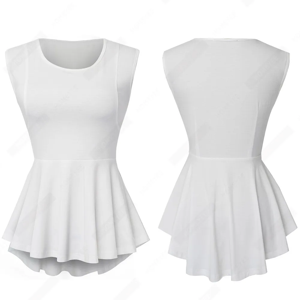 Женская Летняя трикотажная туника с баской, облегающая Туника без рукавов с оборками, повседневный однотонный топ с круглым вырезом, E112