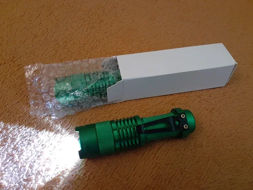 Замовляю не вперше, ліхтарі хороші, доставка 25 днів до Черкас, ліхтар має три режими роботи 100%, десь 50% і "стробоскоп"(блималка) + можливість налаштування фокусу: пучок далеко метрів 150-200 світить, або розсіювання, живлення- батарейка АА, брав зелені - бо дешевші, Рекомендую