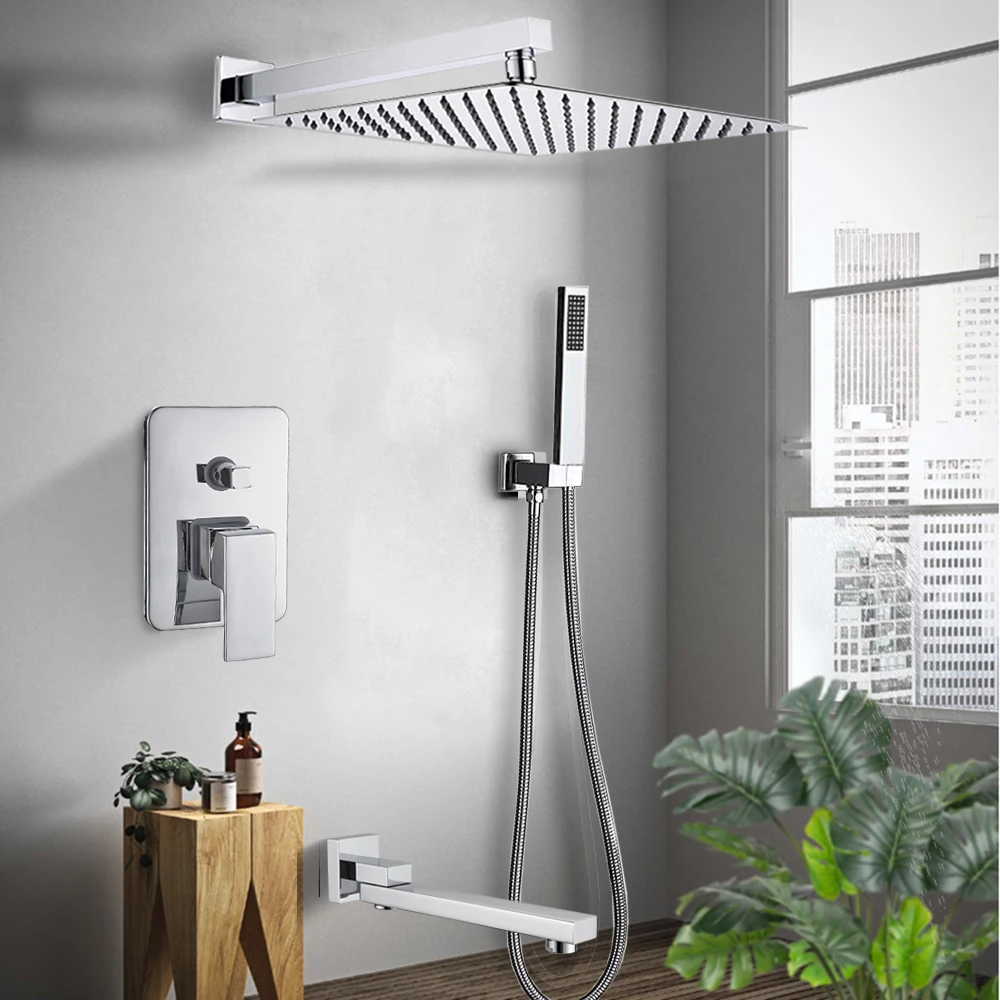 Набор смесителей для душа с настенным креплением, хромированные скрытые Смесители для ванной комнаты, 16 дюймов, с поворотным изливом