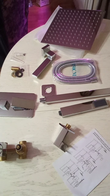 спасибо, пришел очень быстро, всё целое, очень хорошего качество, латунь смеситель, хром качественное покрытие без изъянов, просто идеальный. лейка современная, шланг мягкий, душ верхний просто огромный,как и хотела, качество безупречное, тяжёлое, железо толстое, не т пластика, я очень довольна покупкой, доставкой. однозначно рекомендую. цена низкая для такого качества. всего 6000 обошёлся набор. фото дополню когда установим. через месяц два.